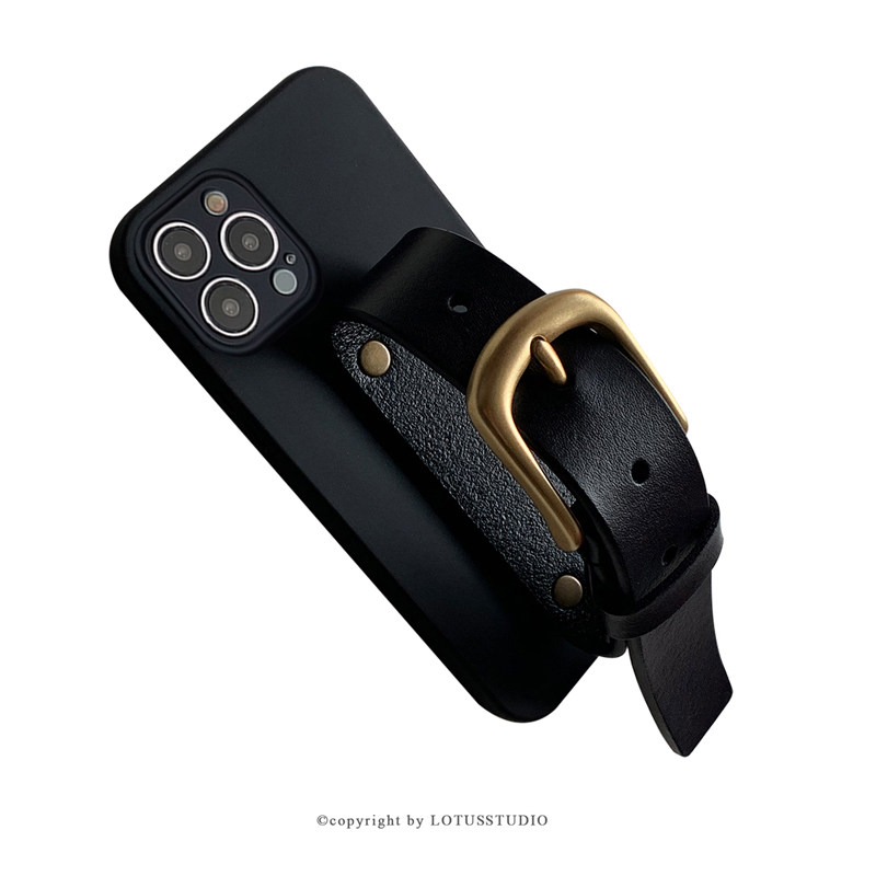 戚薇同款苹果17promax系列保护套牛皮腕带手机壳适用iphone16promax防摔苹果15全包明星设计感黑色极简软壳