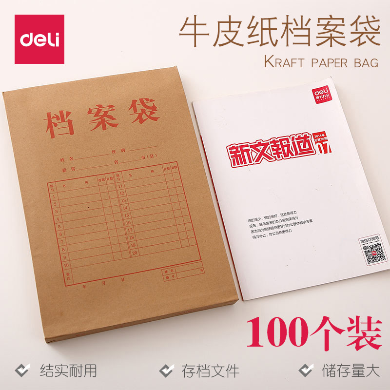 得力5953牛皮纸档案袋A4纸质文件袋文件夹文档文件收纳40mm背宽不易变形加厚投标合同资料批发大容量
