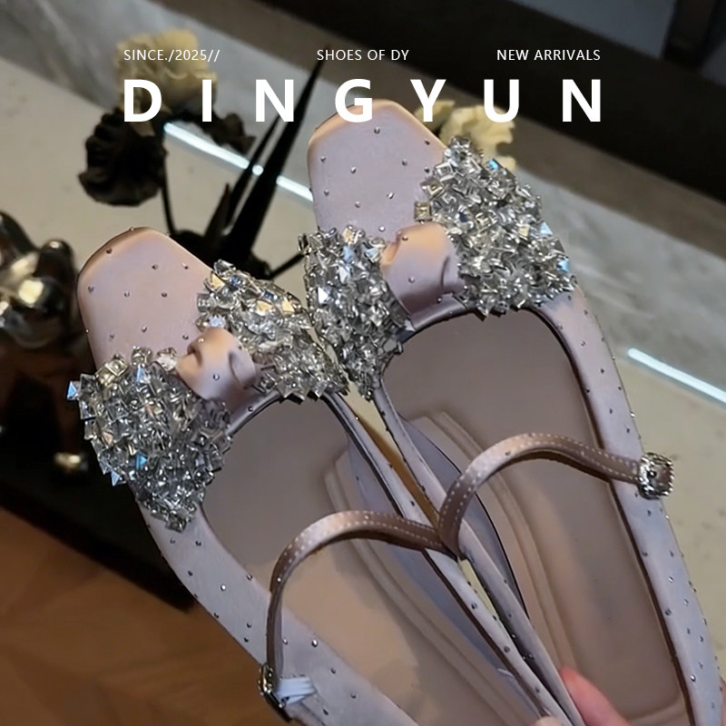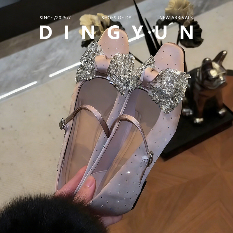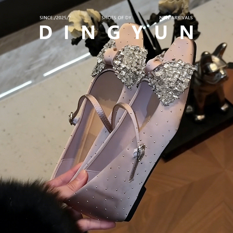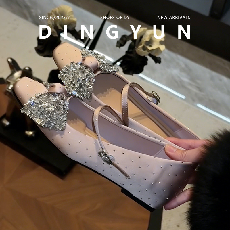 羊皮版dingyun丁允内增高单鞋水钻蝴蝶结裸粉轻奢女鞋子2026春夏