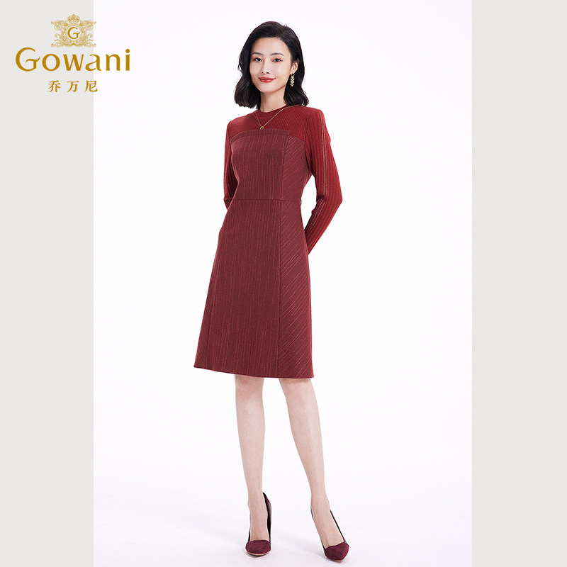 乔万尼2025冬季女士连衣裙长袖修身毛织连衣裙ET1E501103
