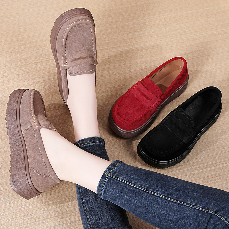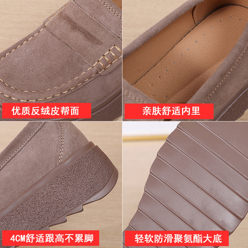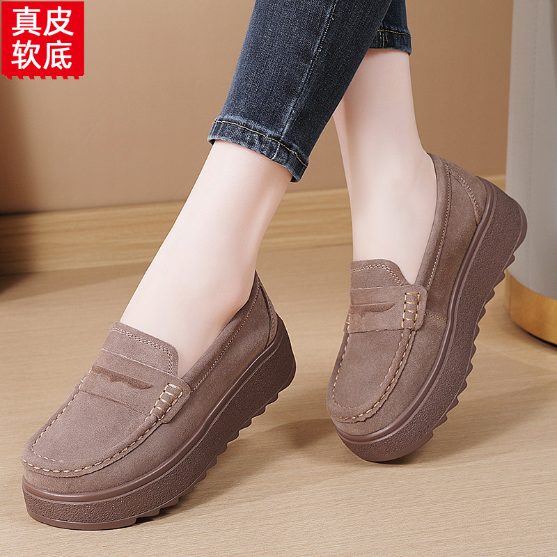2025新款真皮厚底乐福鞋女舒适软底不累脚妈妈鞋一脚蹬松糕豆豆鞋