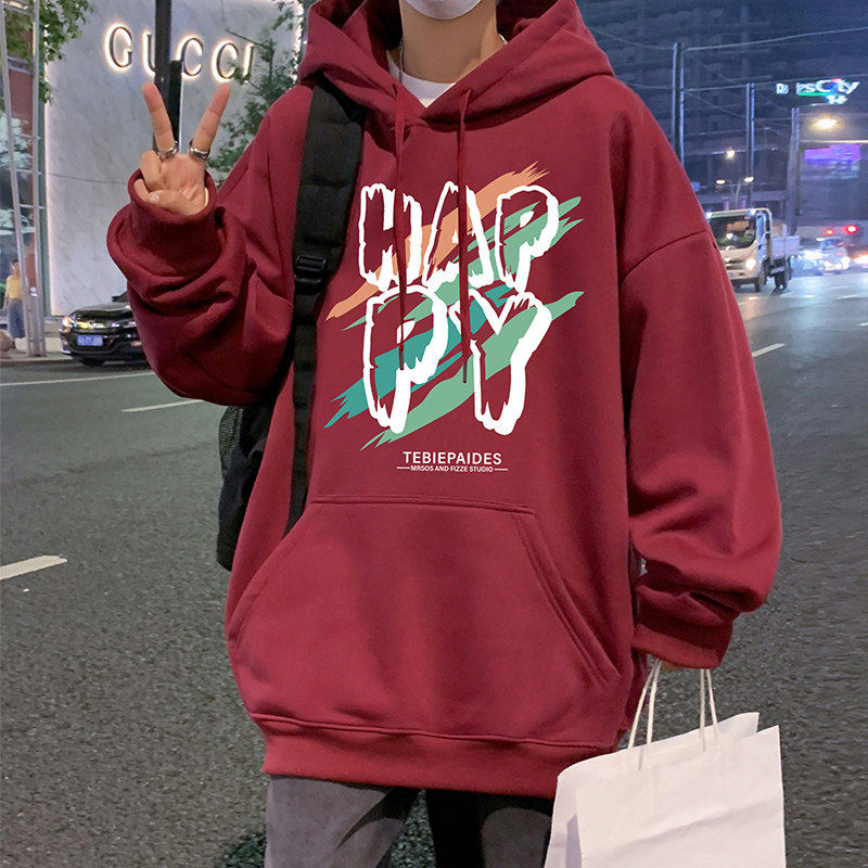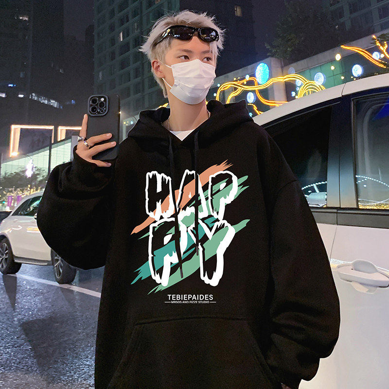 个性字母连帽卫衣男款2026春季宽松大码潮牌帽衫薄款印花长袖外套