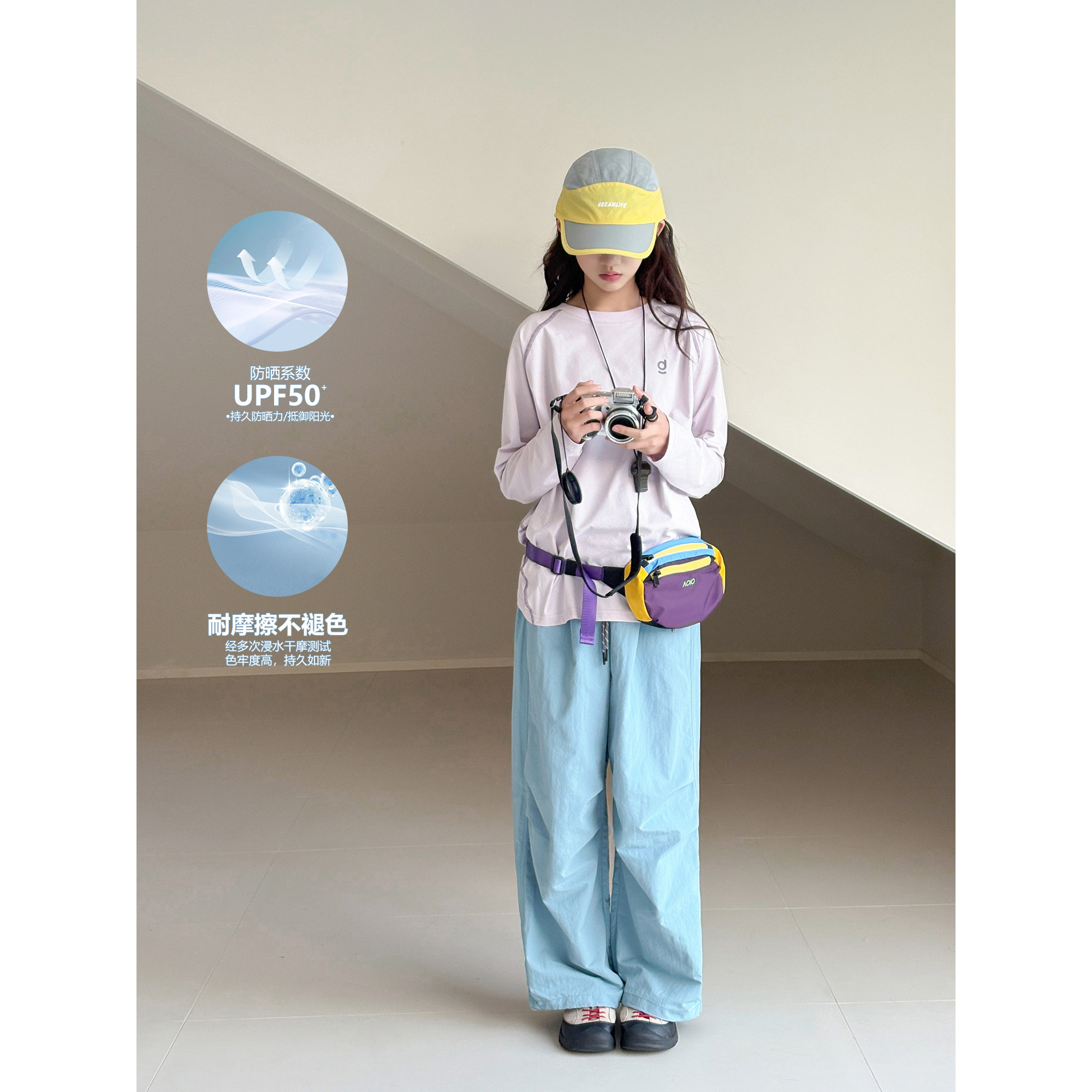 【跳跳糖】初中生女T恤2026春装新款青少年户外速干防晒长袖上衣