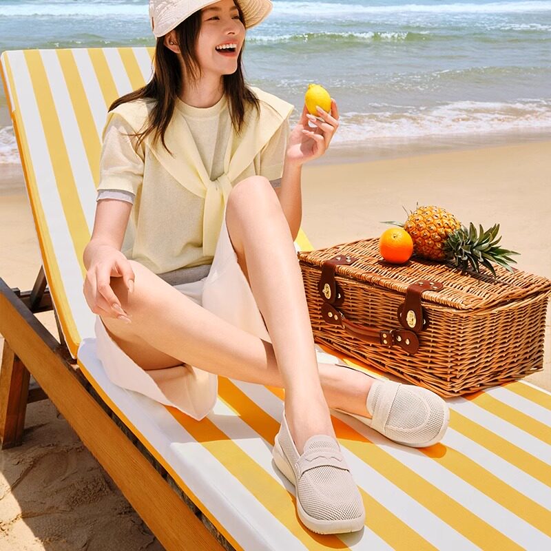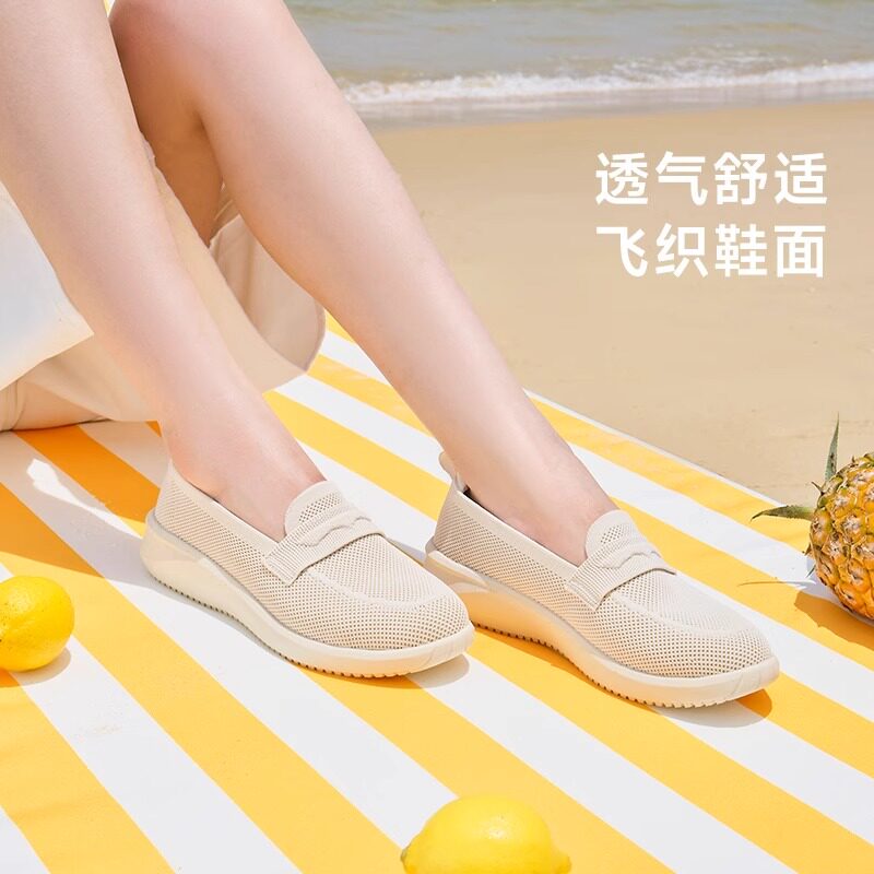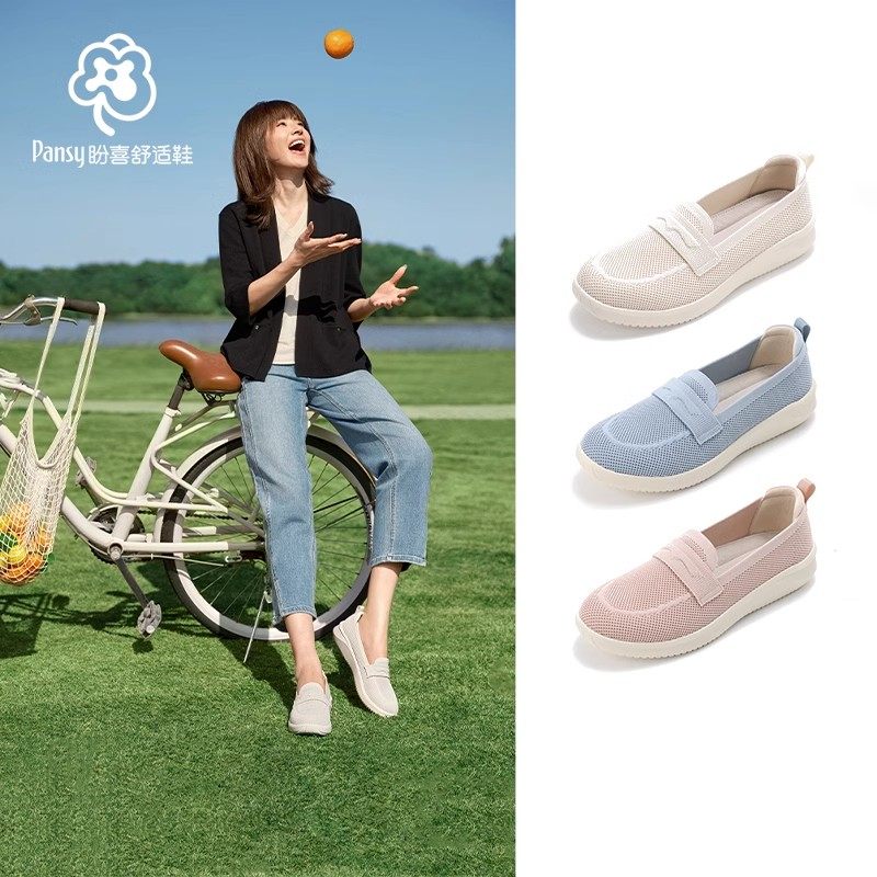 Pansy盼喜日本女鞋休闲轻便舒适一脚蹬透气飞织懒人乐福鞋洁春夏