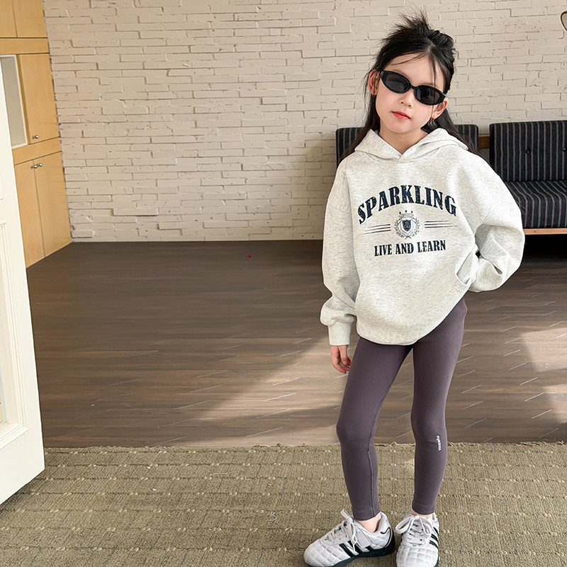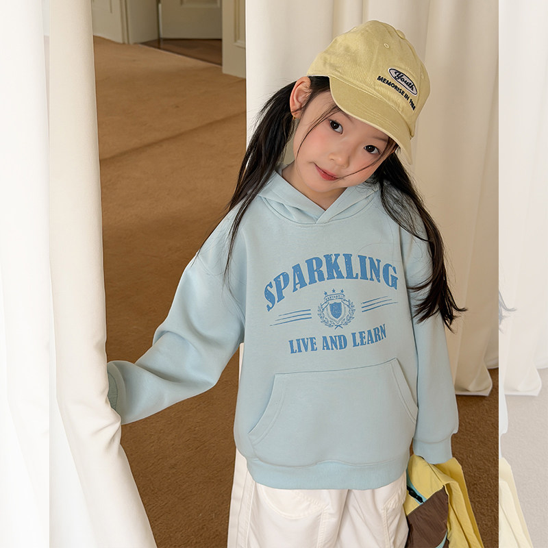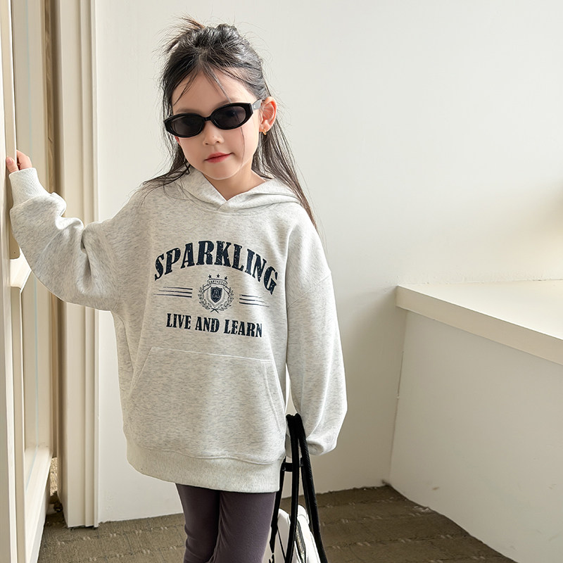 Yumi妈男女童休闲时髦宽松套头衫儿童春季新品字母连帽卫衣26A062