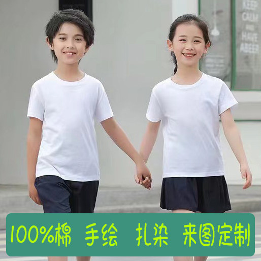 儿童短袖定制幼儿园T恤来图印字印logo纯棉白t恤衫小学生班服订做