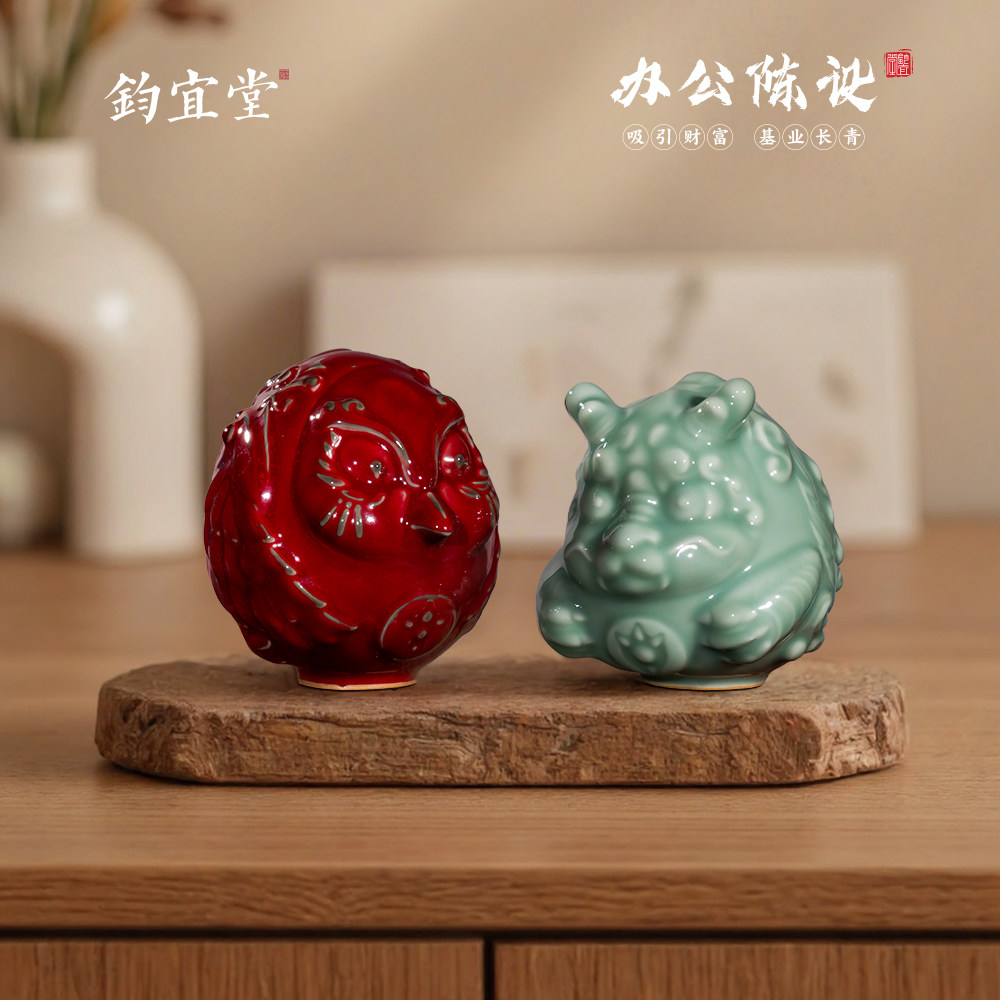 钧瓷陶瓷青龙白虎朱雀玄武四大神兽摆件创意国潮文创装饰工艺品