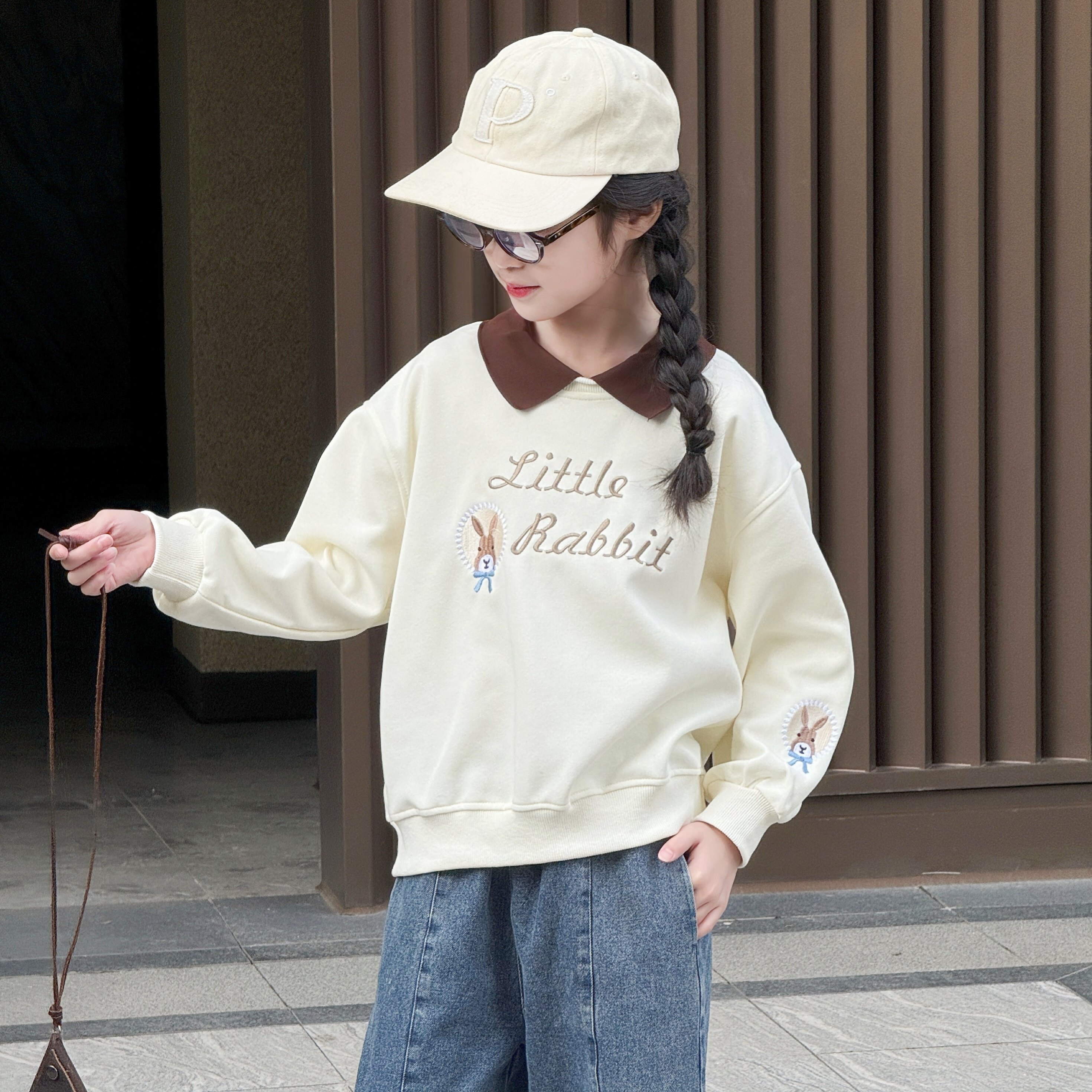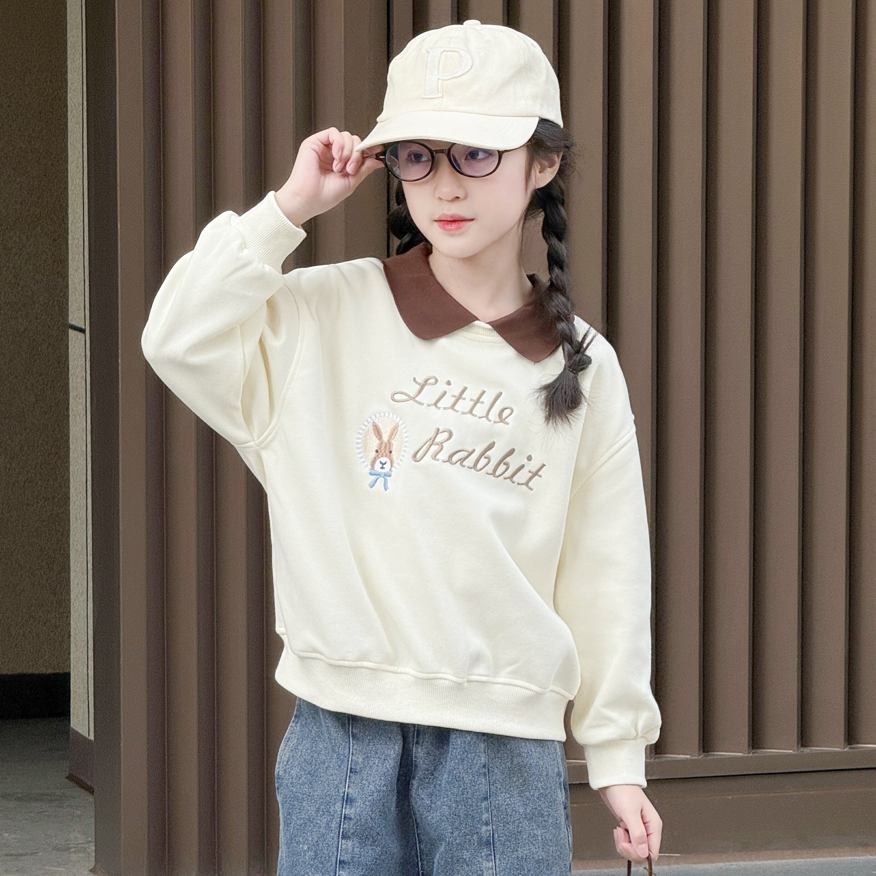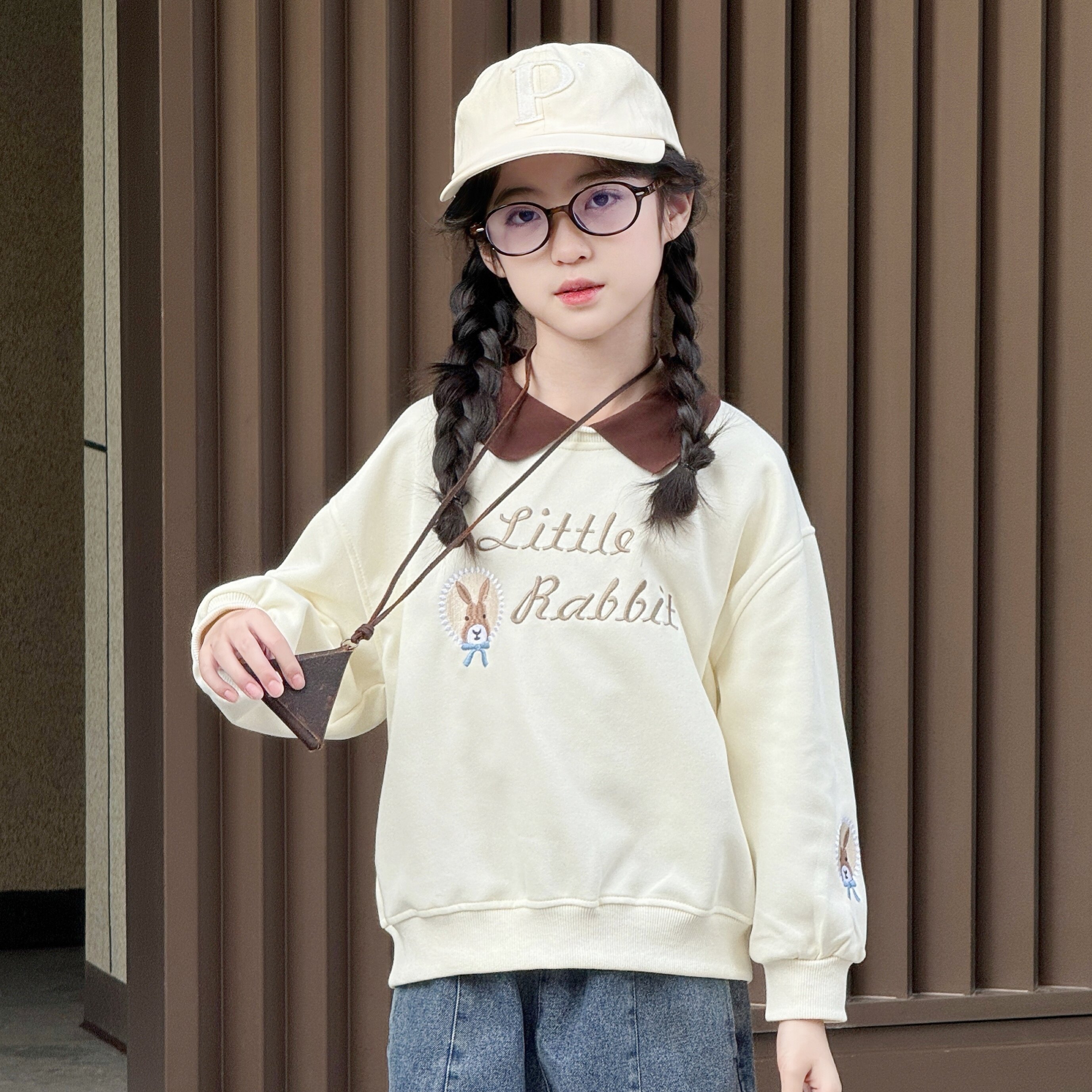 女童春装卫衣2026新款长袖套头洋气学院翻领女孩中大童春秋上衣潮