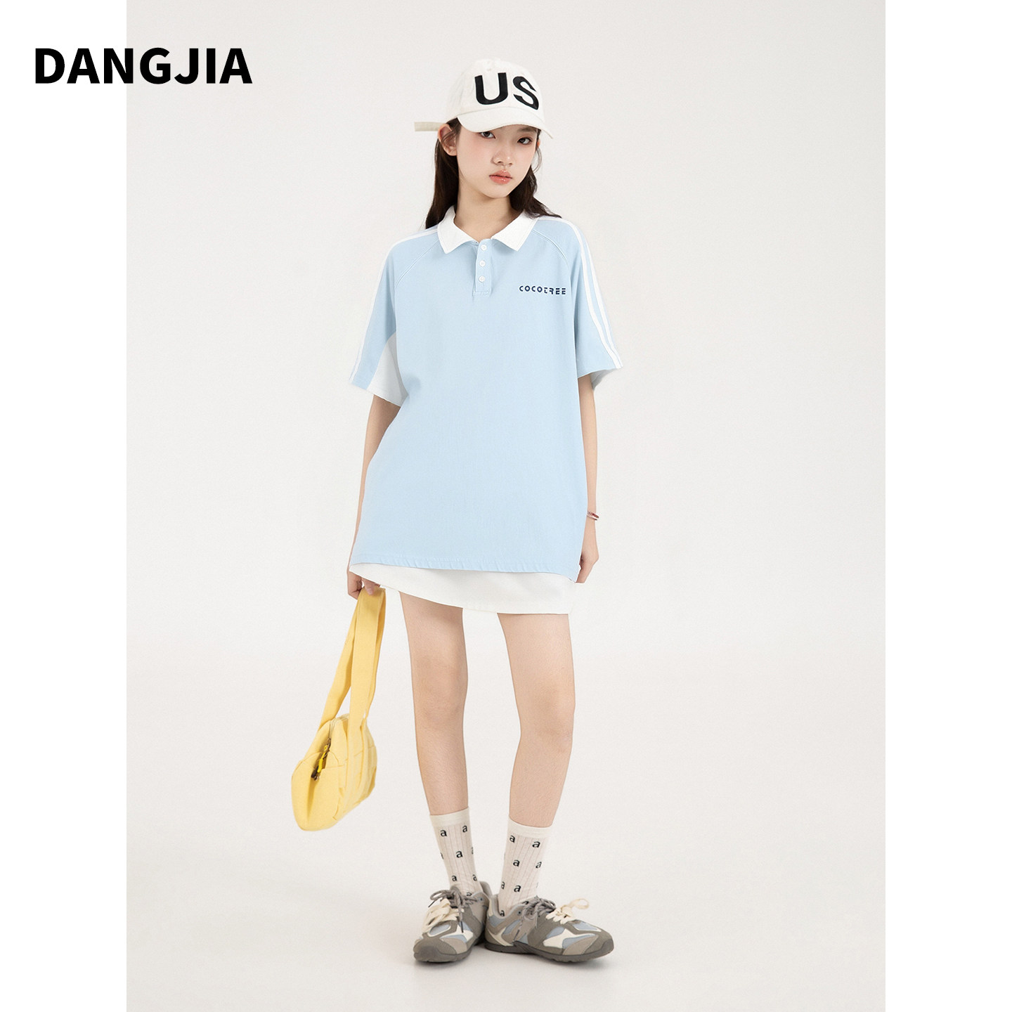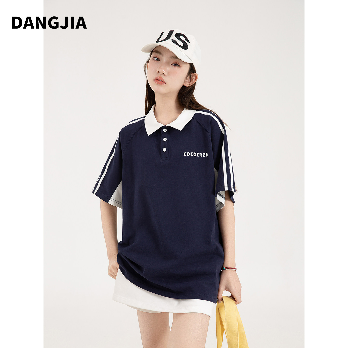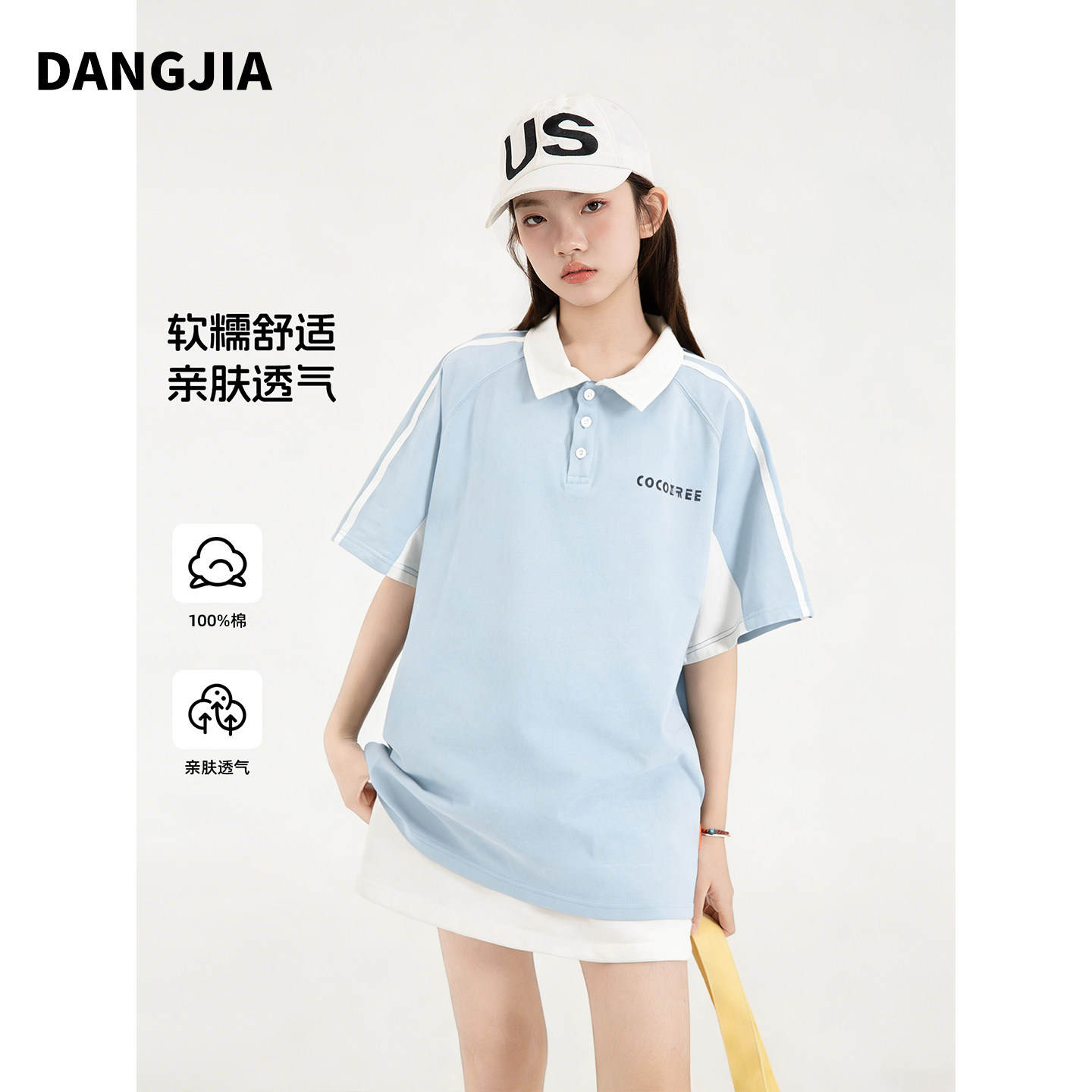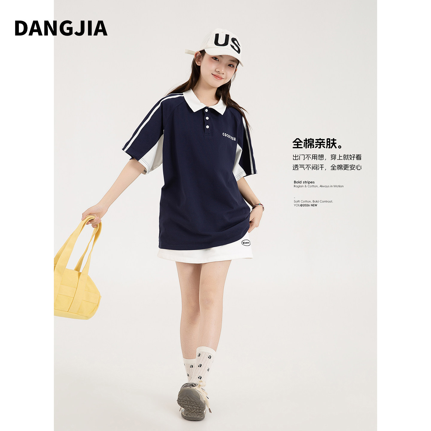 女大童翻领POLO衫2026新款初中生女孩短袖上衣纯棉宽松重磅T恤夏