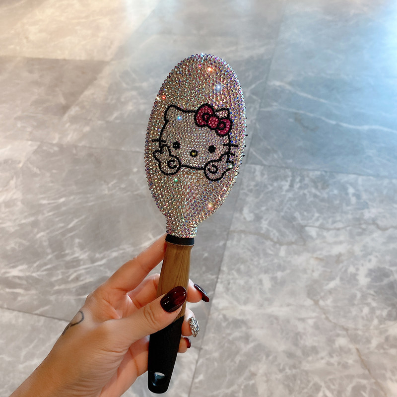 精致奢华梳子防静电打结小巧便携款气垫梳耐看镶钻化妆补妆镜套装