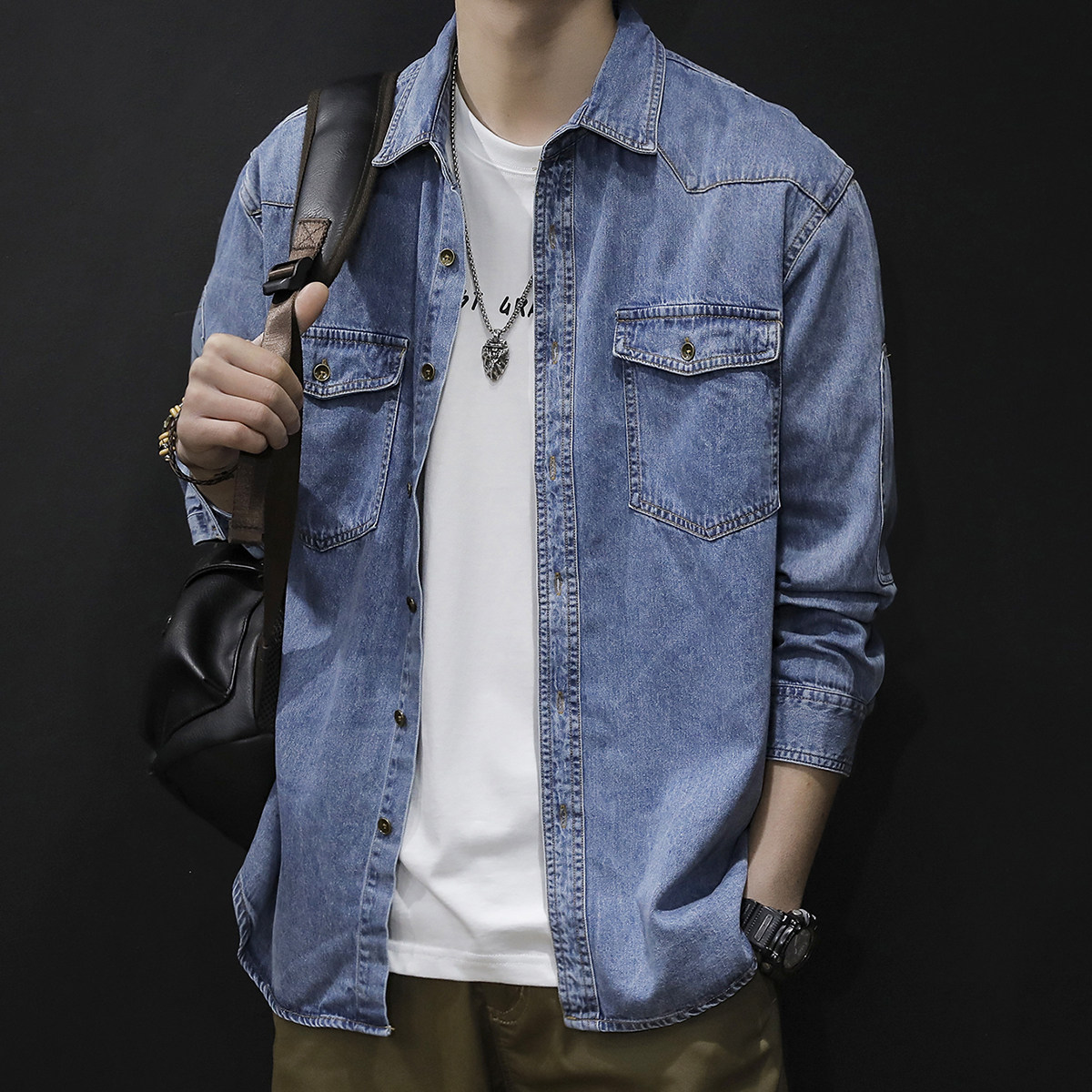 春季男款薄款2023新款衬衣外套男士休闲春秋上衣长袖牛仔衬衫男