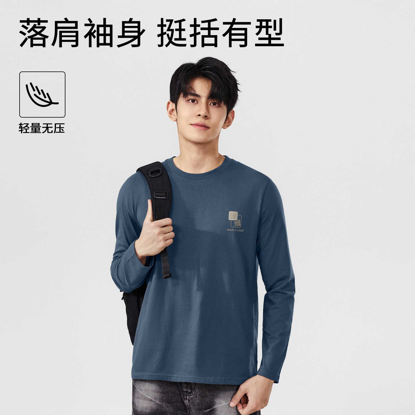 311线报网描述:纯棉打底衫春季新款圆领长袖日式简约t恤男