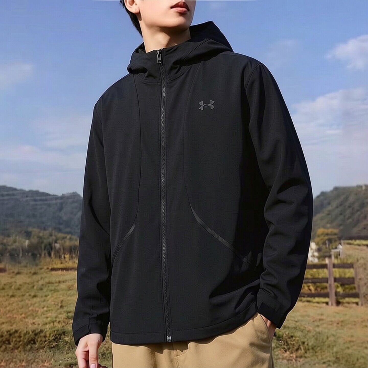 安德玛外套男款官方正品2026新款跑步运动服防风夹克连帽冲锋上衣