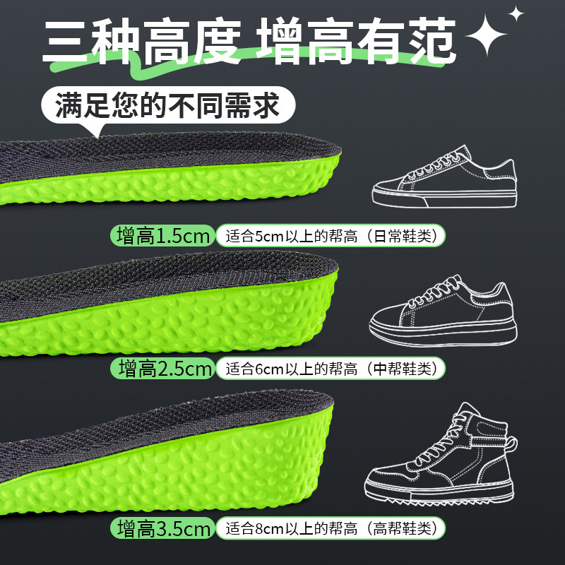 增高鞋垫男生皮鞋专用软弹舒适隐形不累脚吸汗防臭透气运动减震