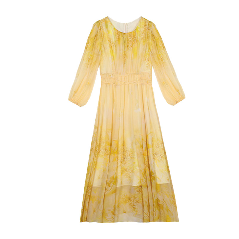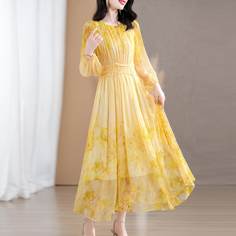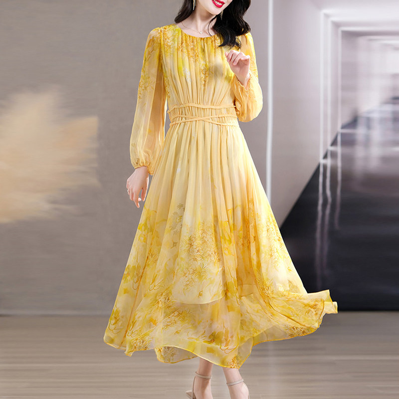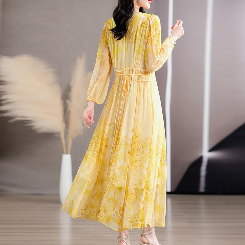高端大牌重磅真丝长袖连衣裙2026春装新款女士奢华裙子桑蚕丝长裙