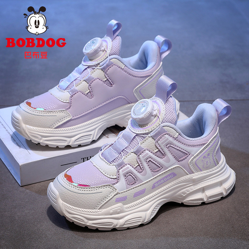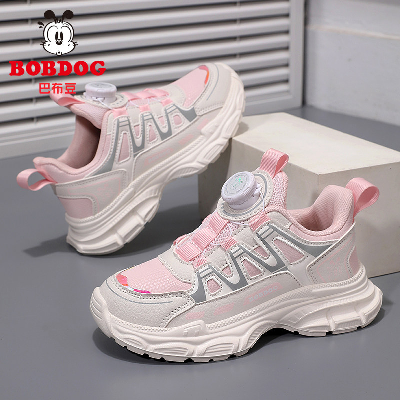 巴布豆童鞋女童运动鞋子春秋季新款皮面儿童小学生百搭女孩休闲鞋