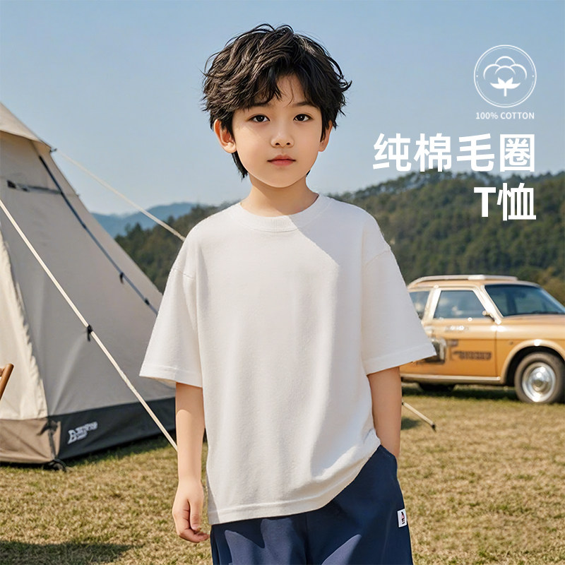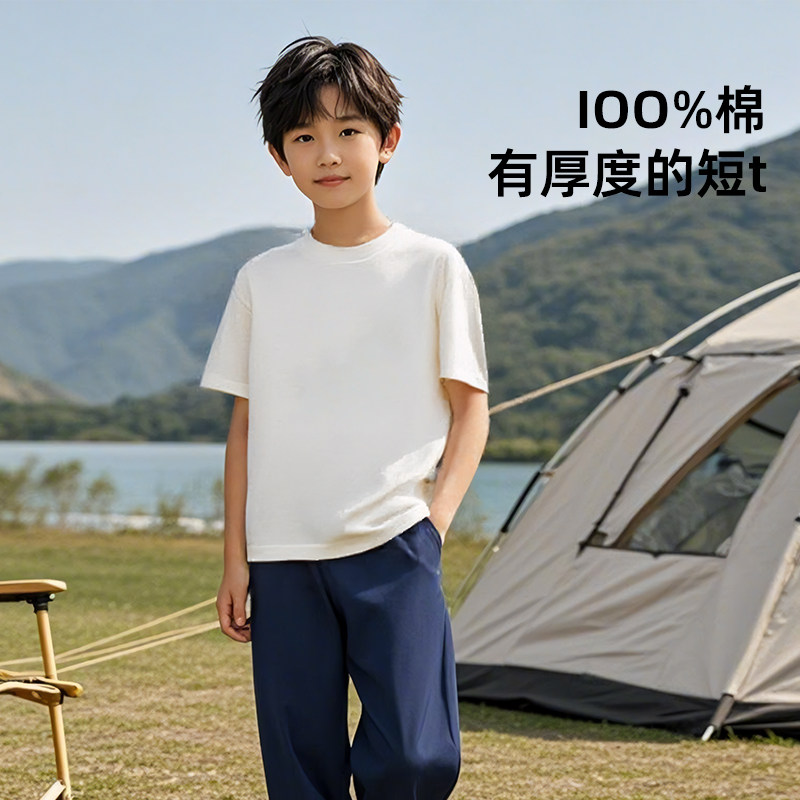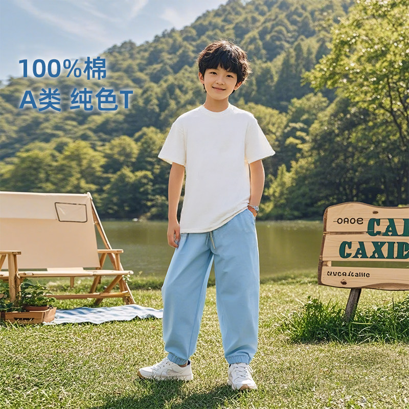 儿童白色短袖T恤纯棉a类2025新款男童圆领男孩宽松女童装定制体恤