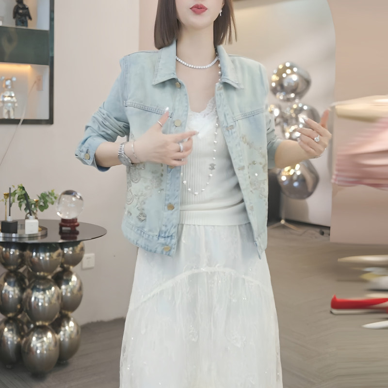 设计感重工刺绣牛仔短款外套女款欧洲站2026春季新款宽松休闲上衣