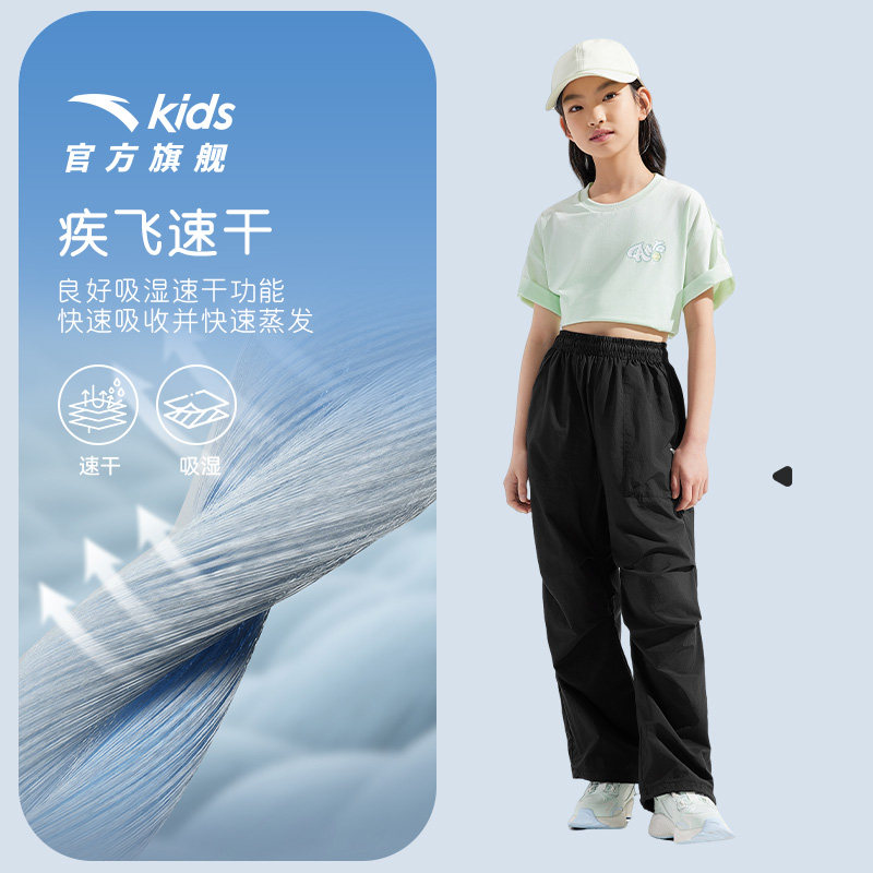 安踏儿童装女童裤速干裤长裤夏季2026新款直筒裤户外运动裤伞兵裤