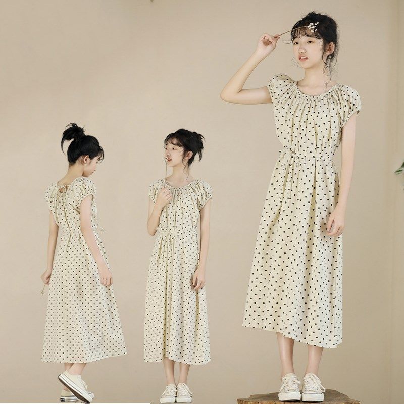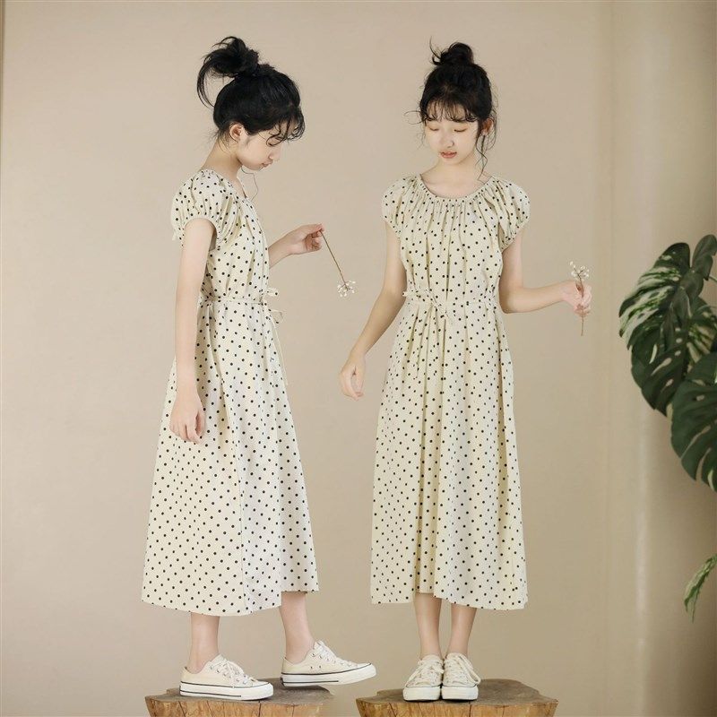 大童女装夏季连衣裙洋气女童长裙初中生女孩波点裙子度假风高级感
