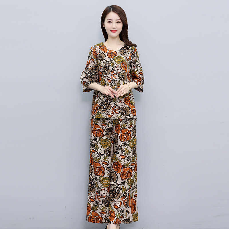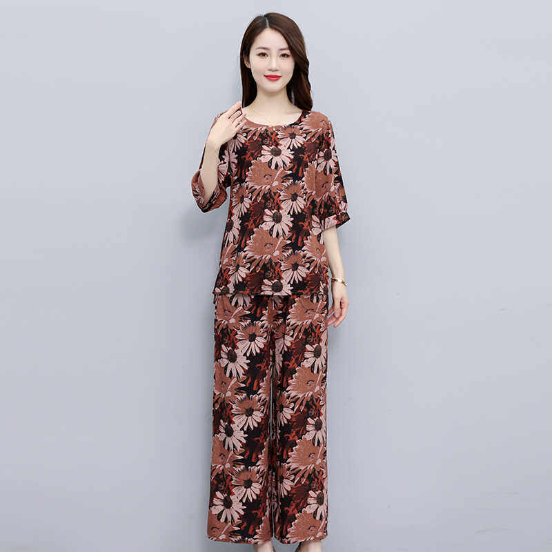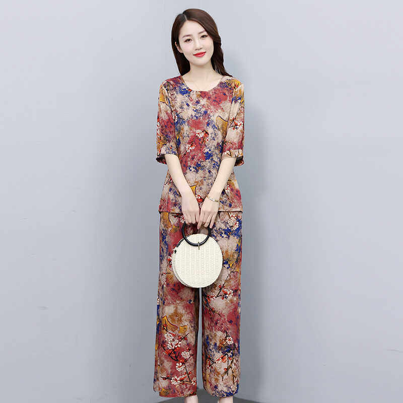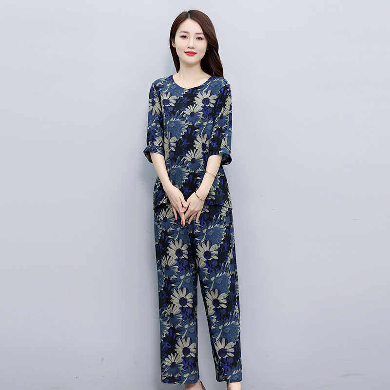 中老年女装上衣裤子棉绸两件套2026夏季新款大码休闲时尚妈妈套装