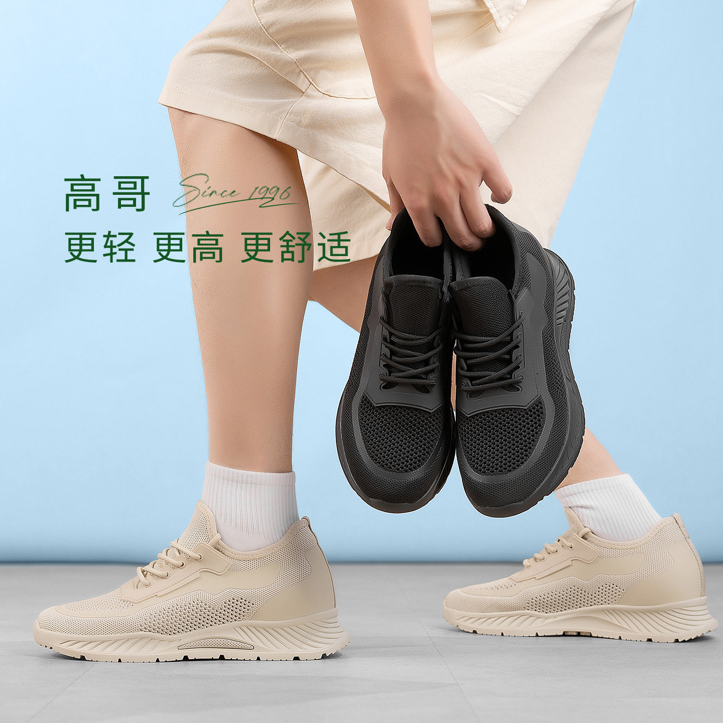 高哥增高网面鞋男款软底软面鞋子夏季飞织运动鞋透气内增高休闲鞋