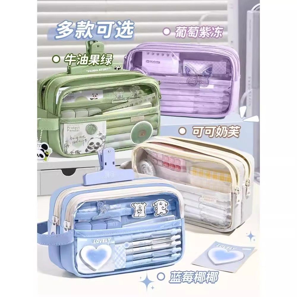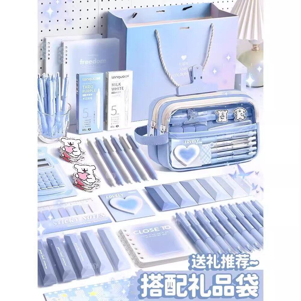 线条小狗文具套装学习用品五层透明笔袋上学大礼包一年级开学文具礼盒女孩生日礼物女生笔袋小学生开学礼物