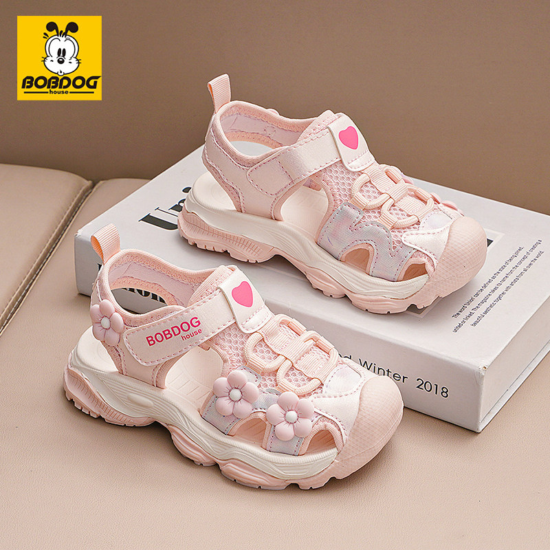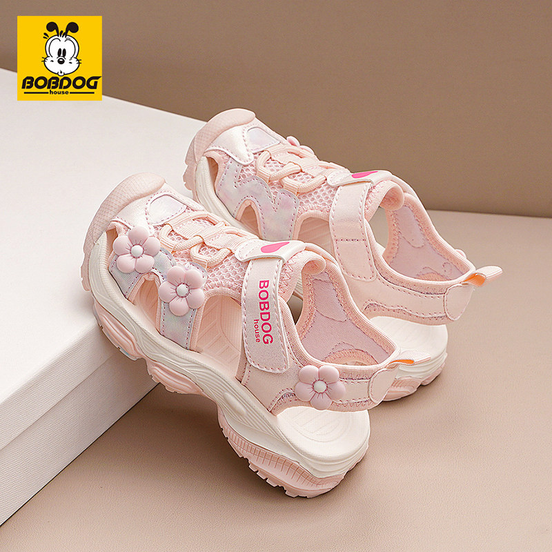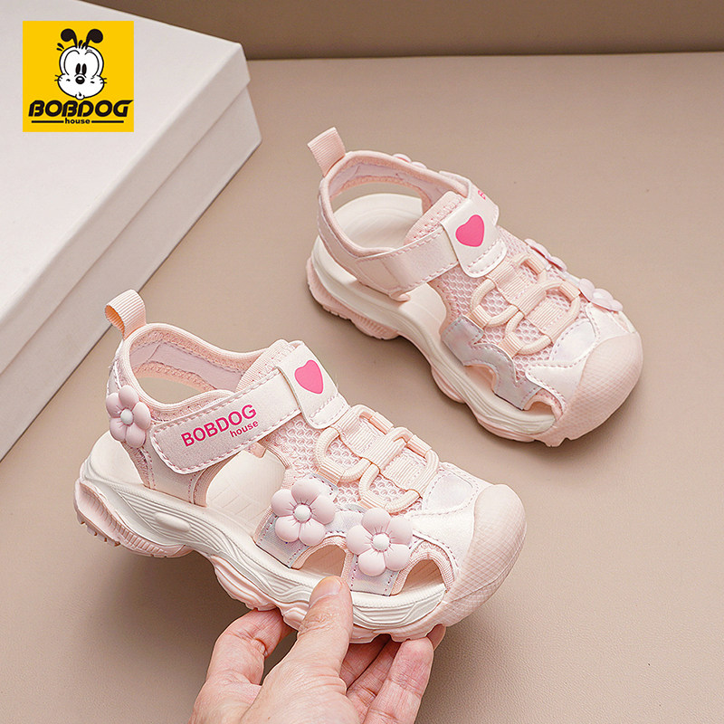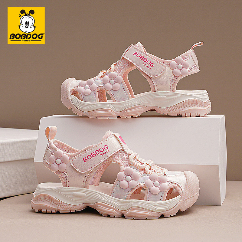 巴布豆女童凉鞋2026夏季新款包头花朵户外沙滩鞋软底防滑休闲鞋子