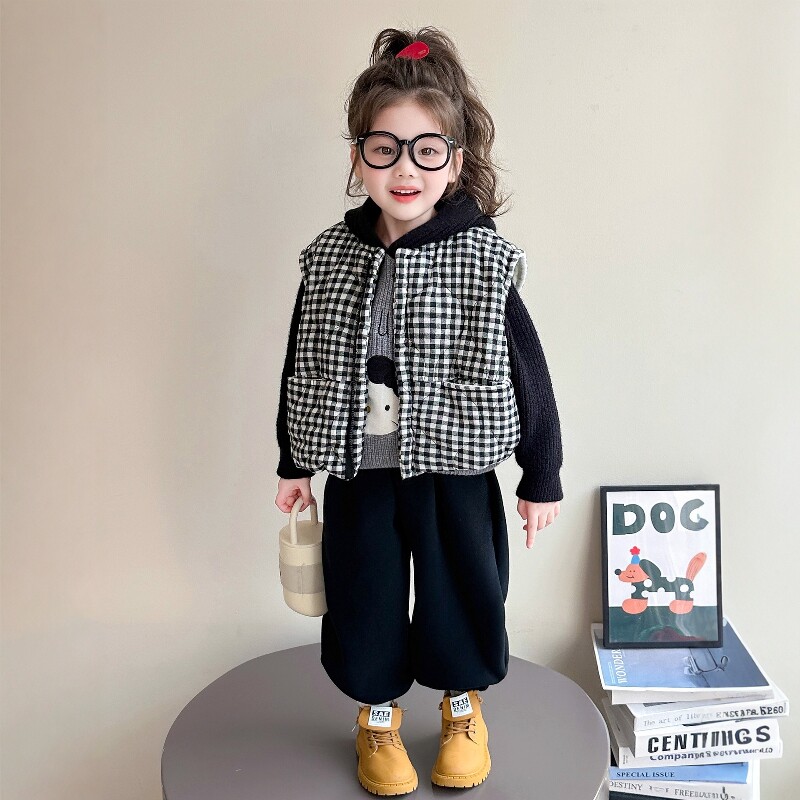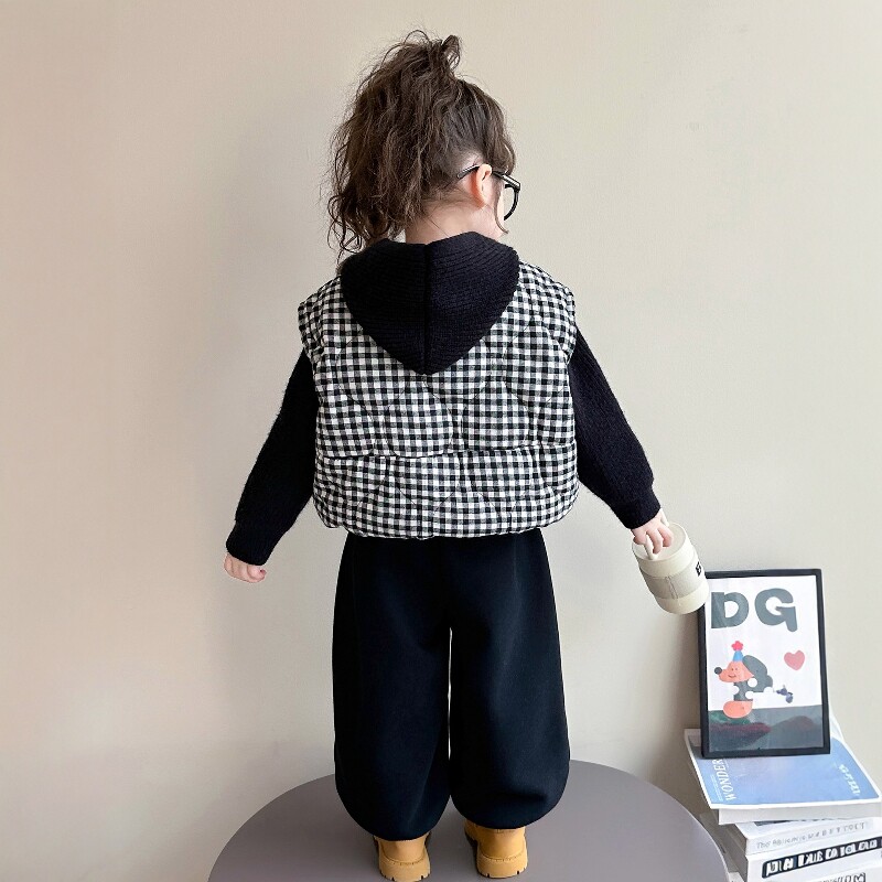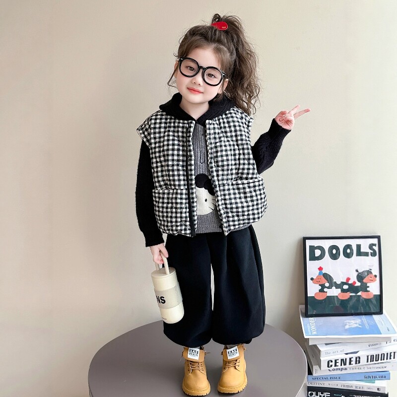 法国Uamtor女童秋冬套装2025韩版夹棉马甲加绒裤子加厚毛衣三件套