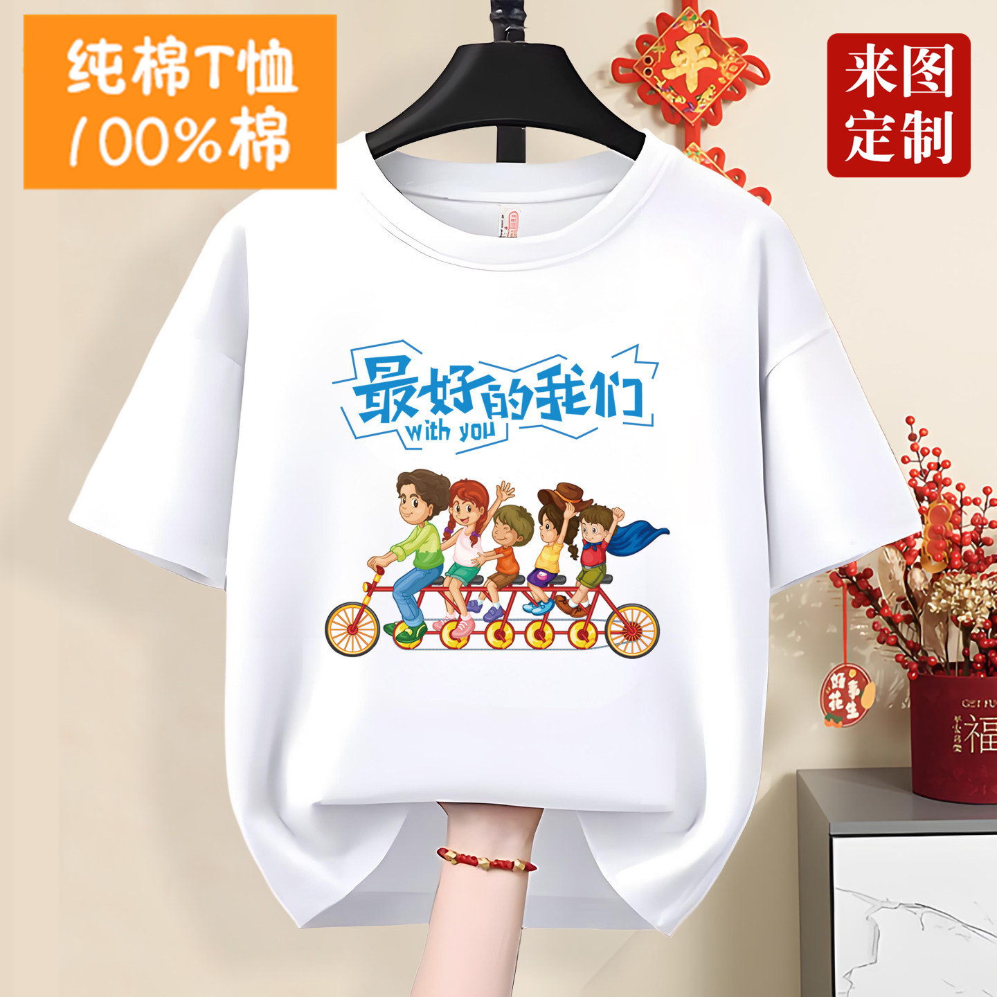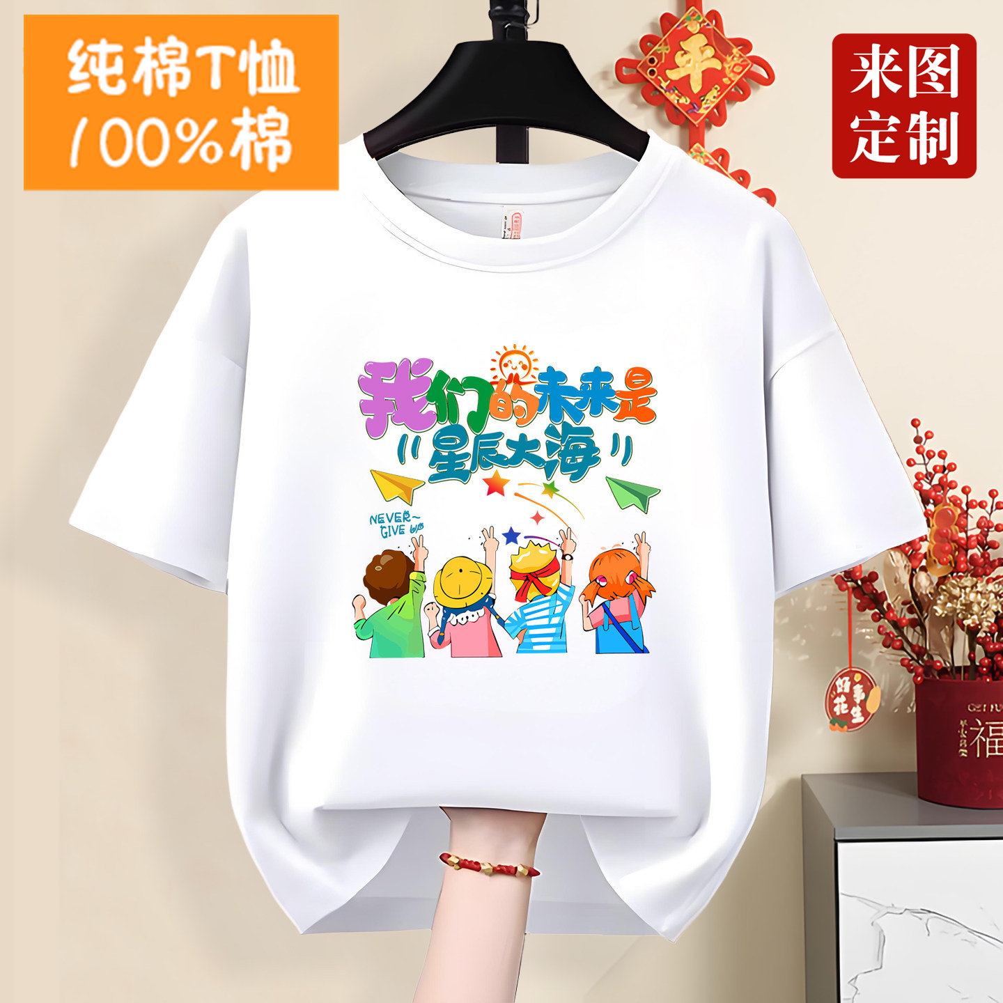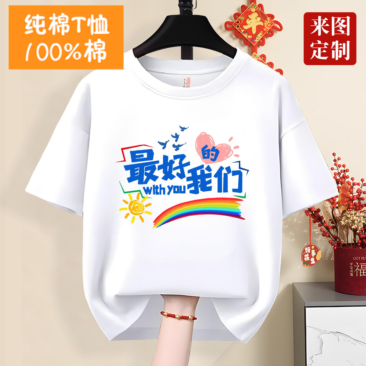 纯棉儿童T恤定制logo白色男女童糖果色短袖小学生幼儿园班服印字