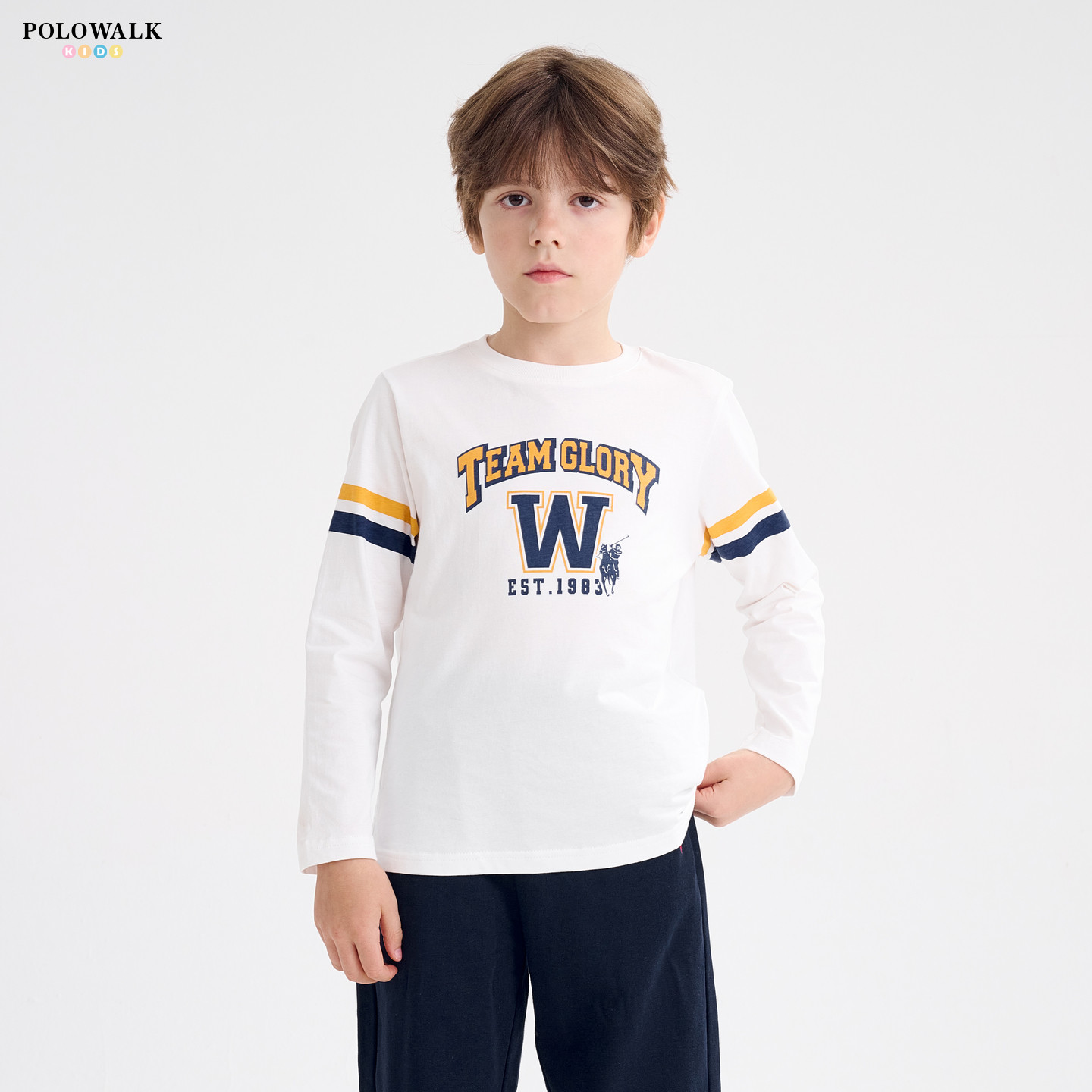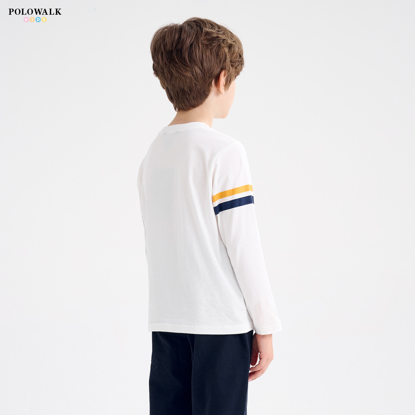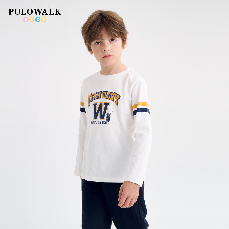 【100%棉】POLOWALK童装男童T恤2026春夏新款圆领薄款长袖打底衫
