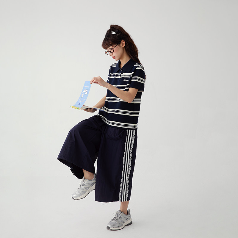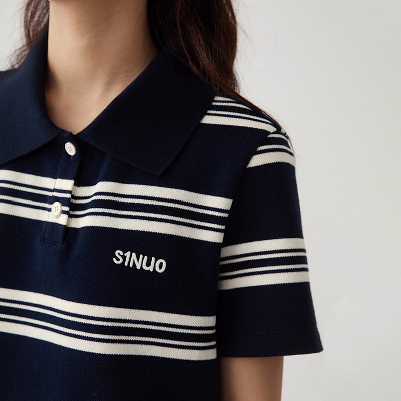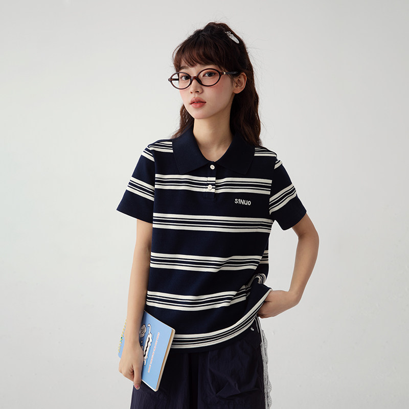 诺诺公主S1N 初中生春夏Polo翻领短袖T恤女青少年显瘦学院风上衣