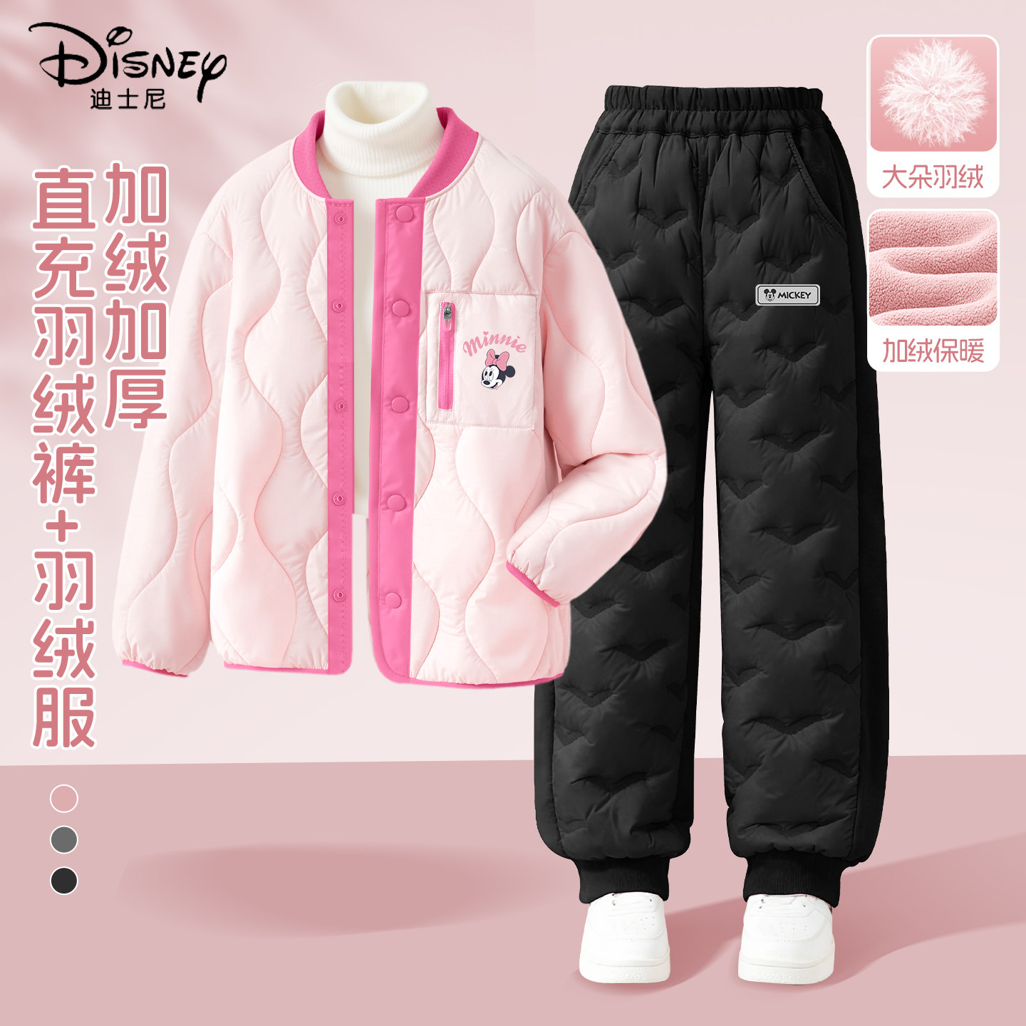迪士尼女童加绒套装2026新款紫色时髦保暖童装外套儿童冬装休闲装