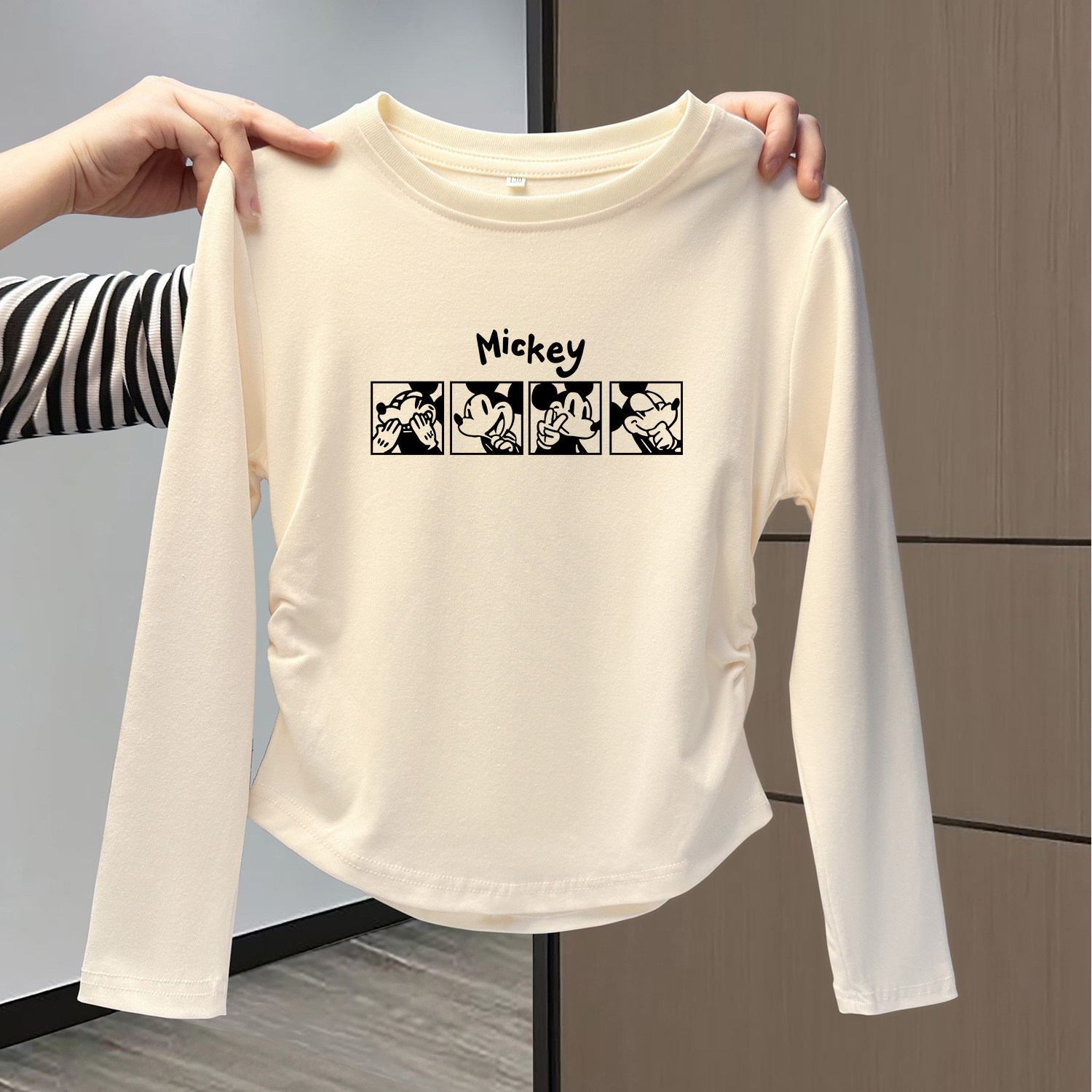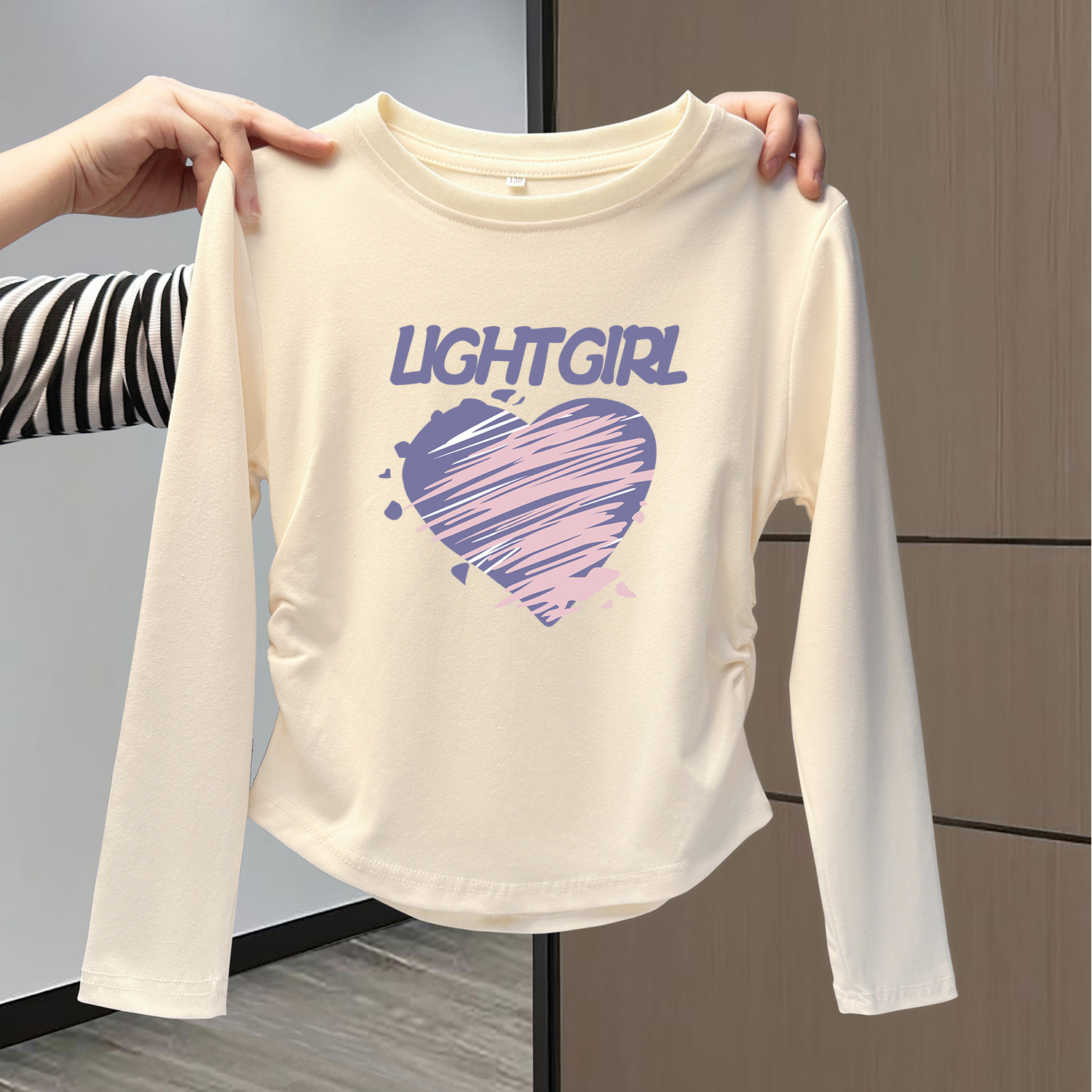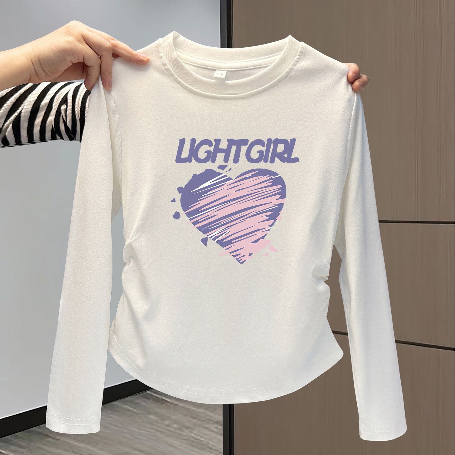 女大童纯棉长袖t恤短款修身春秋装儿童打底衫内搭白色超好看上衣