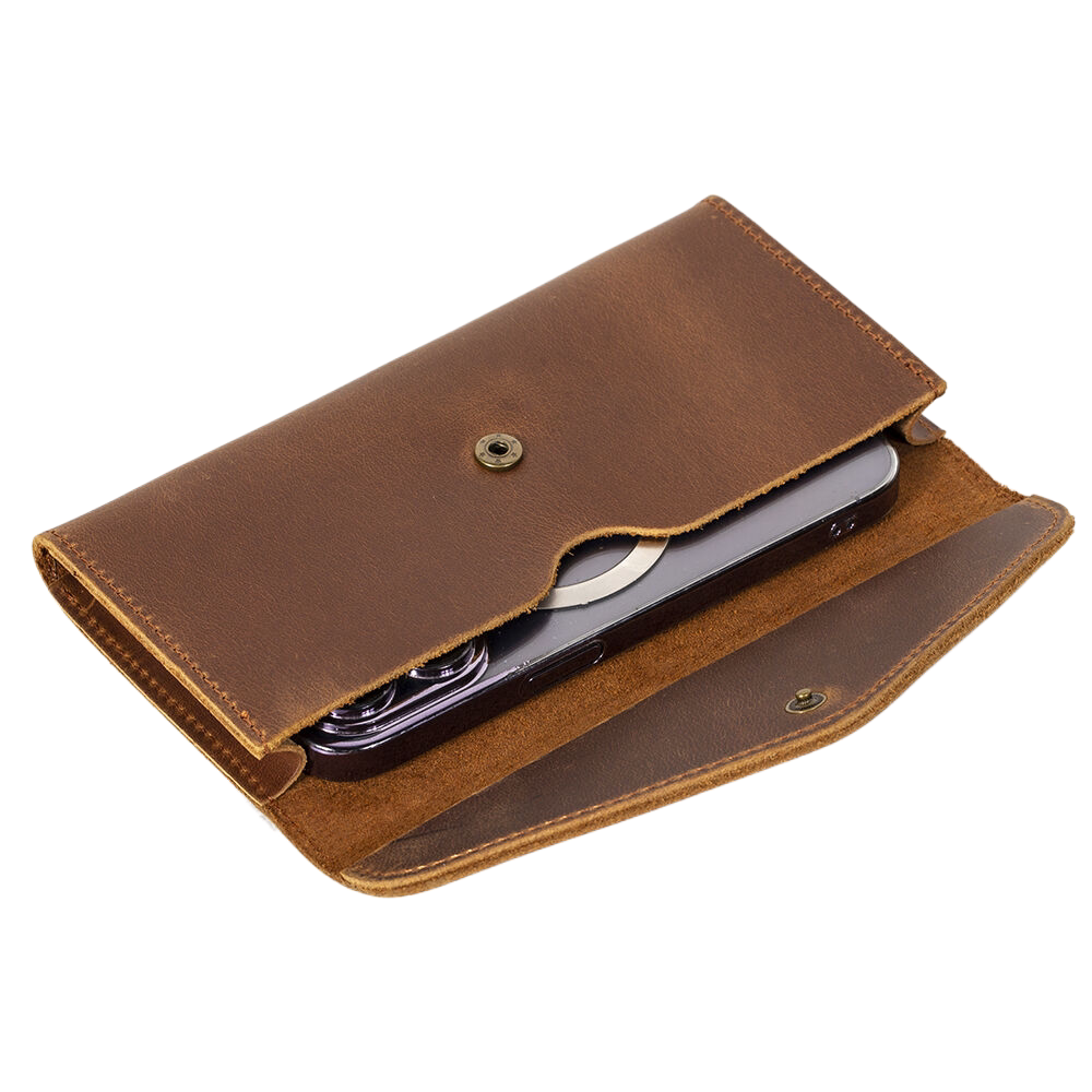 爆款男士手机腰包真皮长款钱包两用网红超轻薄横疯马头层牛皮男包