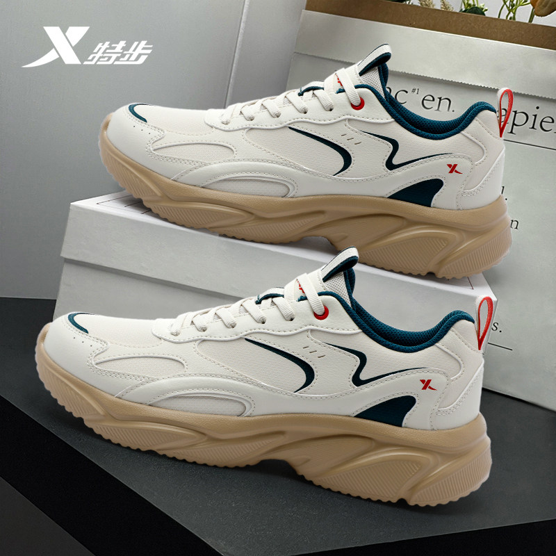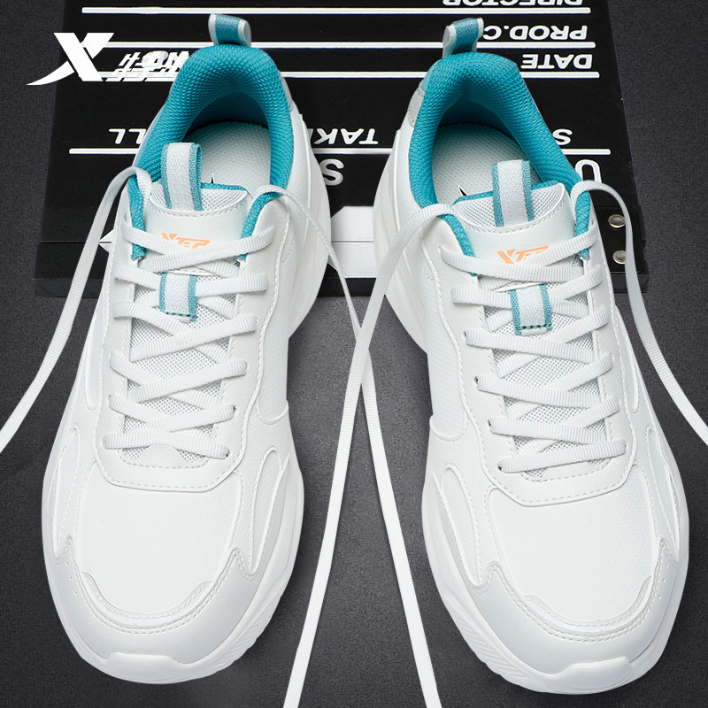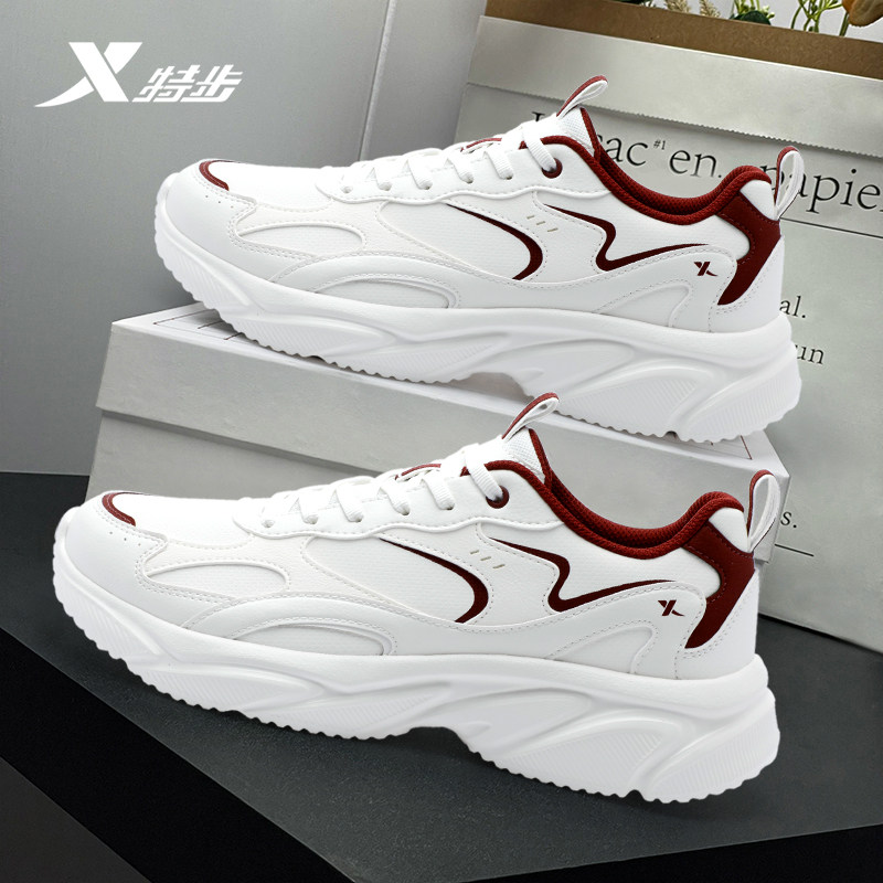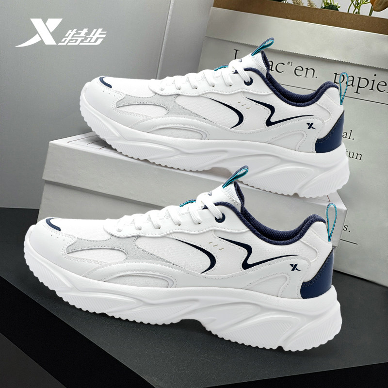 特步男鞋官方正品休闲鞋2026新款潮流皮面防水运动鞋软底减震跑鞋