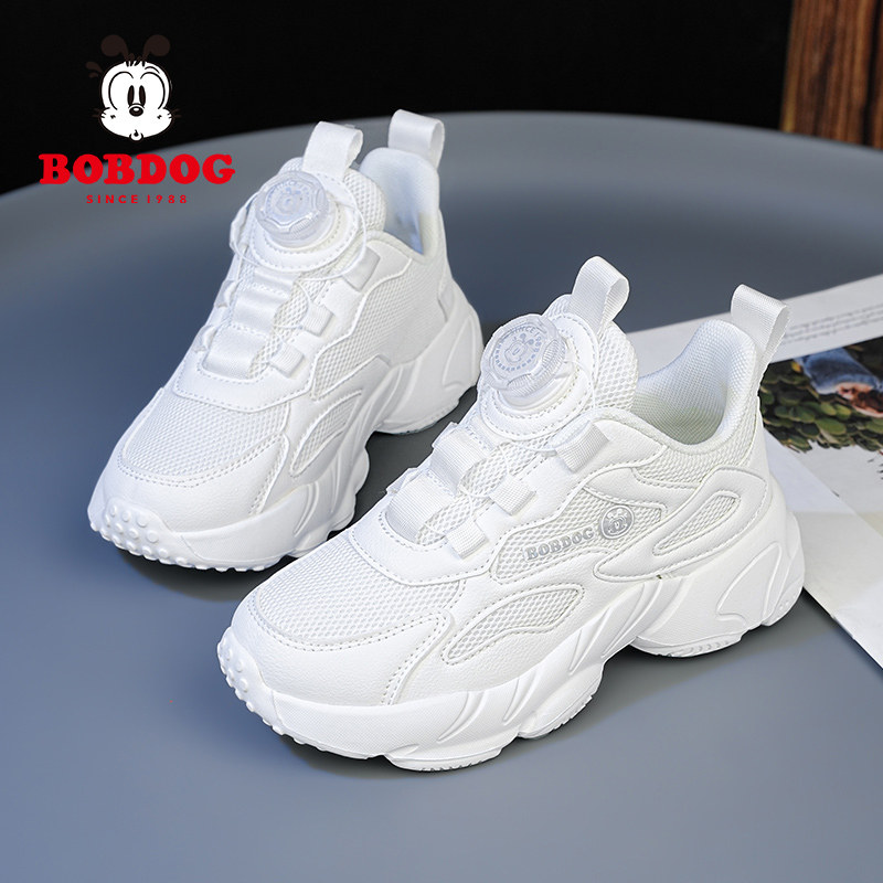 巴布豆童鞋白色2026春夏男女童小白鞋网面透气儿童运动跑步比赛