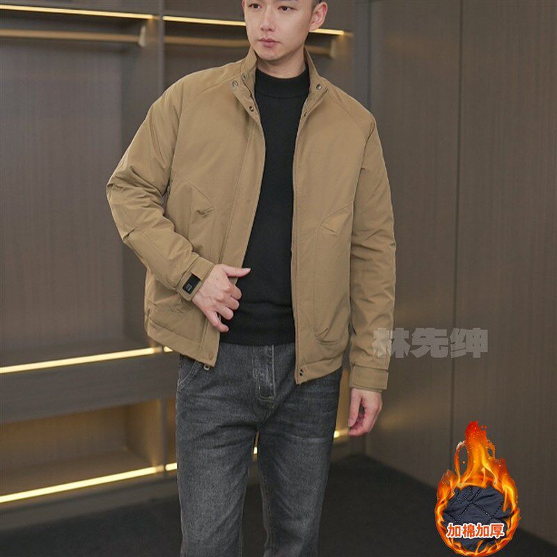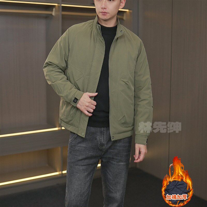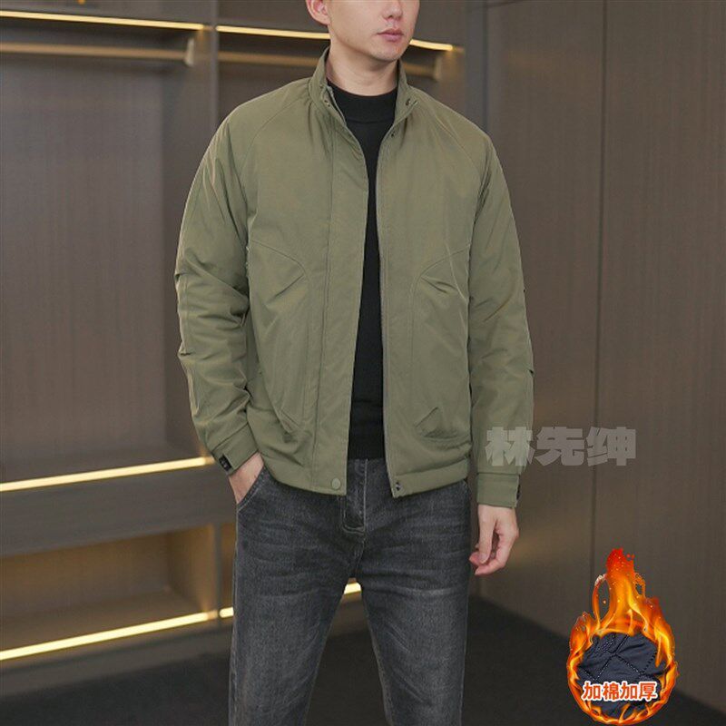 立领简约飞行夹克男士加厚秋冬装男款外套茄克衫休闲宽松上衣棉衣