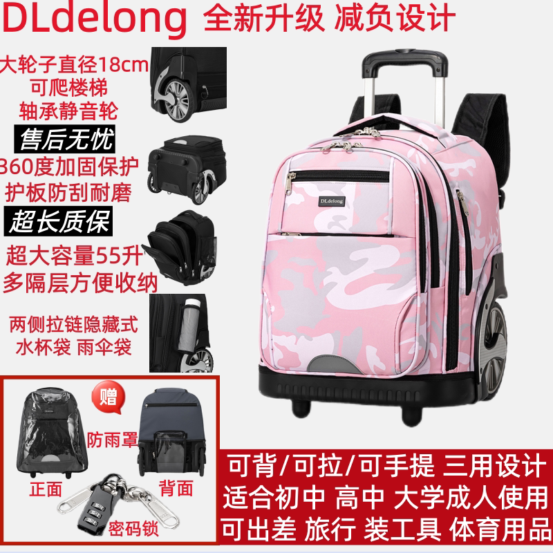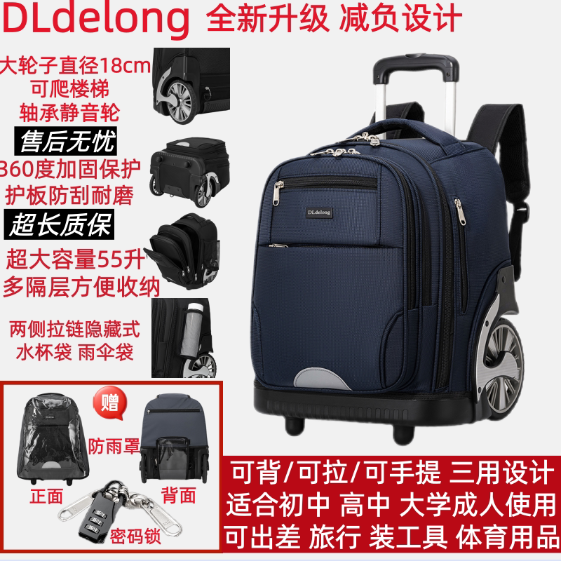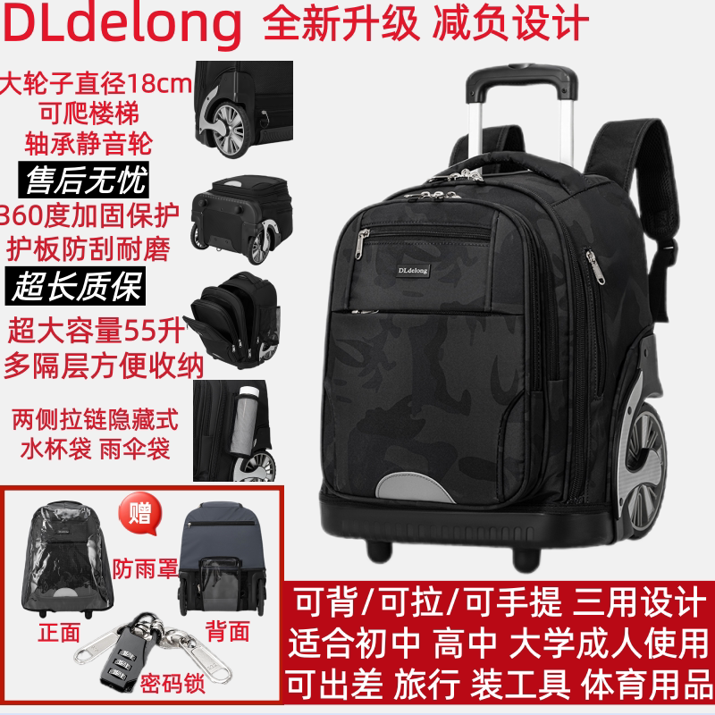 DLDelong拉杆书包初中高中小学生男孩女大容量可爬楼防水静音拖拉