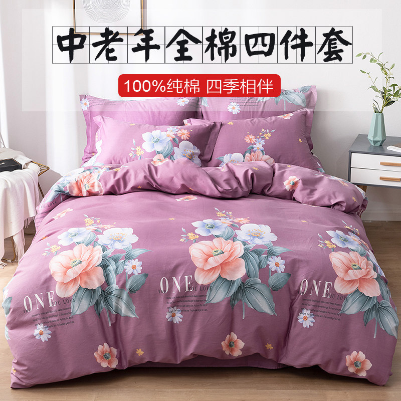纯棉四件套1.5床上用品中老年人1.8米床单被套男全棉春夏床笠薄款