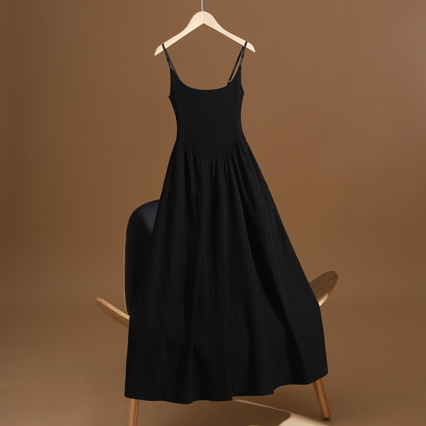 法式黑色高级感气质裙收腰显瘦吊带连衣裙女裙夏季度假风A字长裙