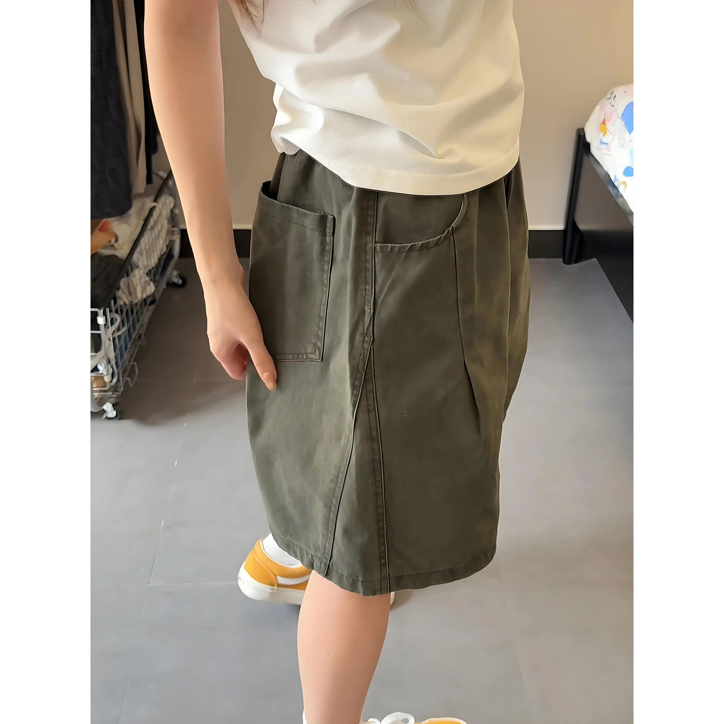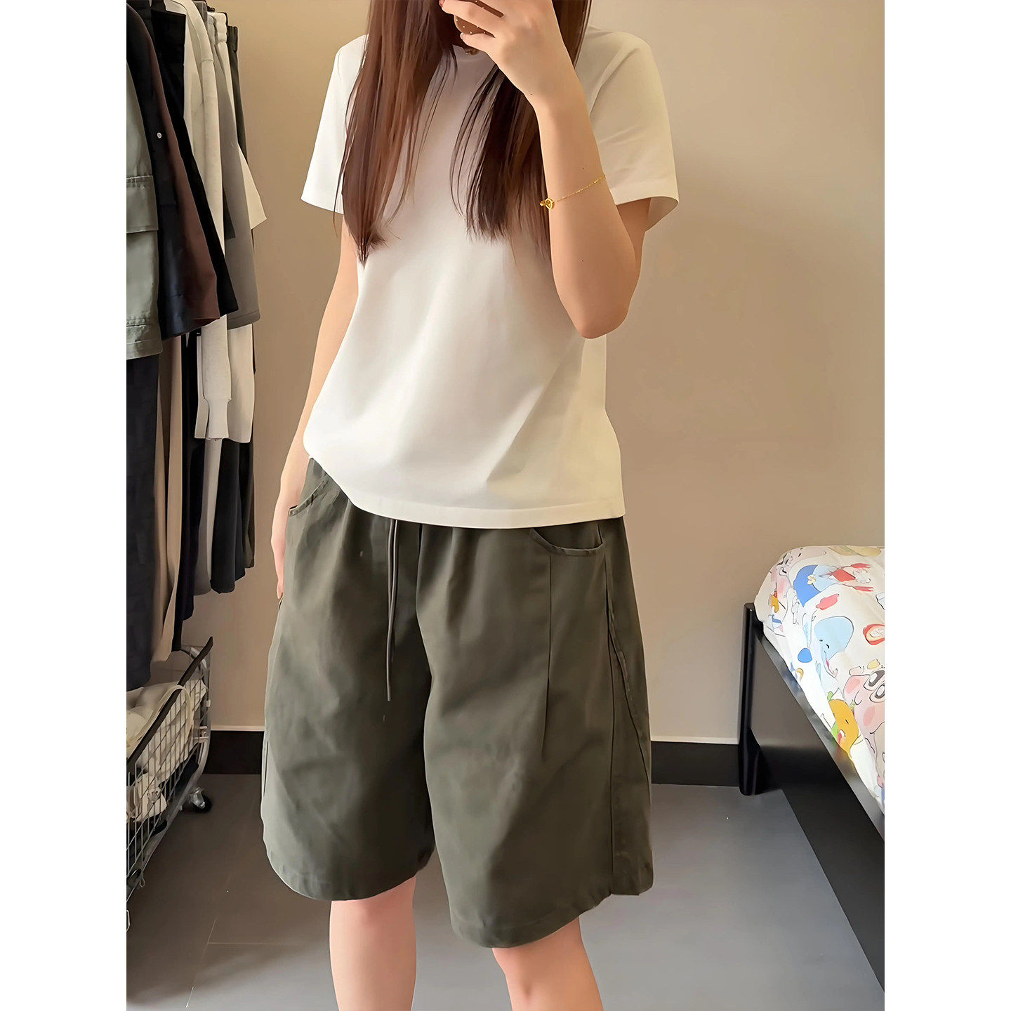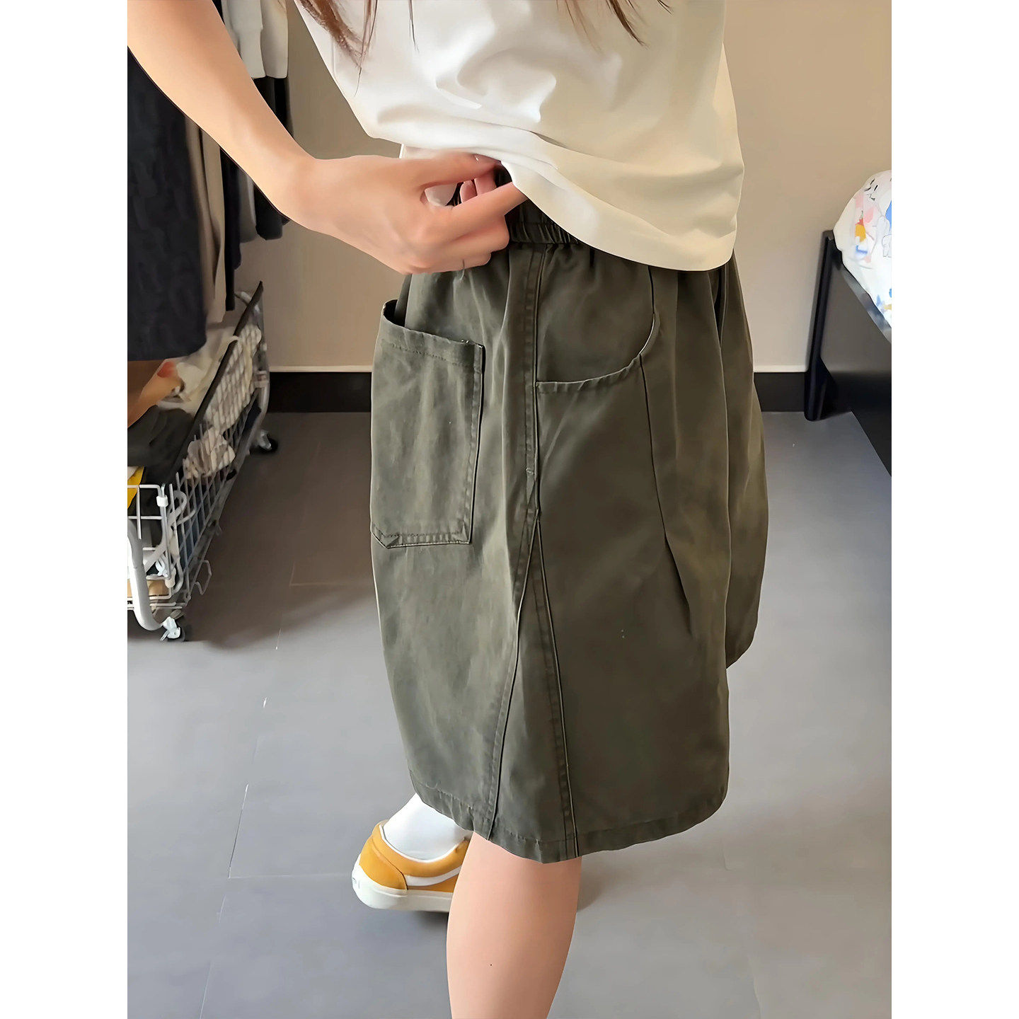 军绿色美式四分短裤男款夏季直筒水洗纯棉工装裤子休闲运动五分裤