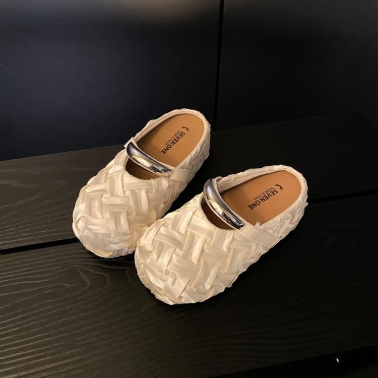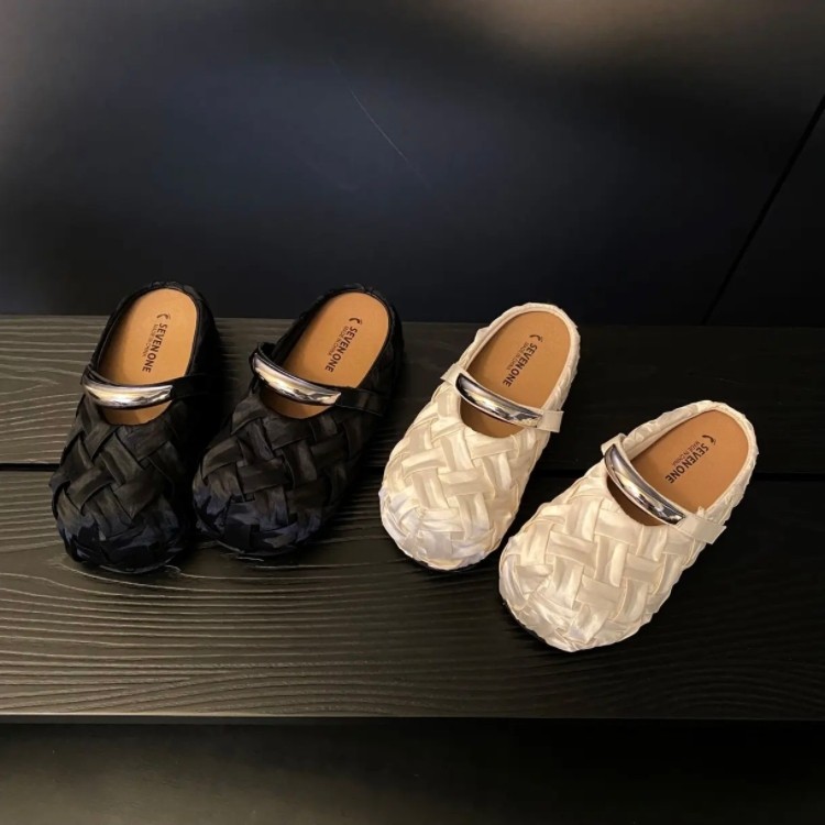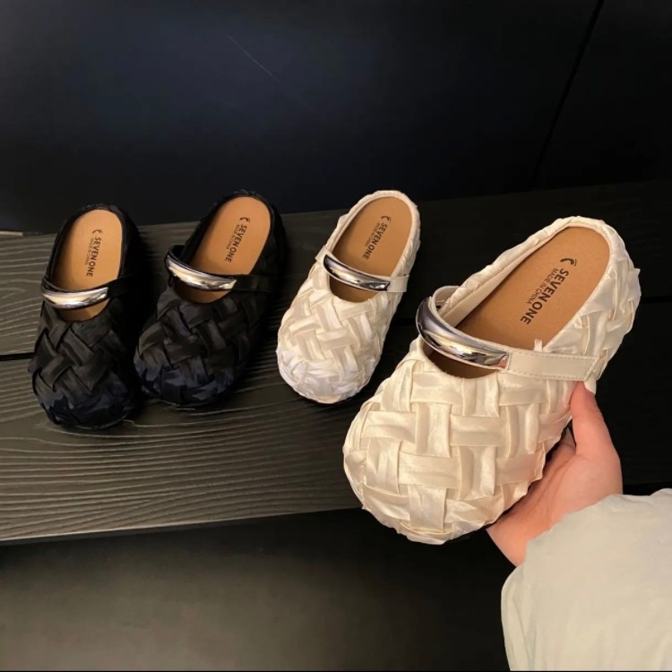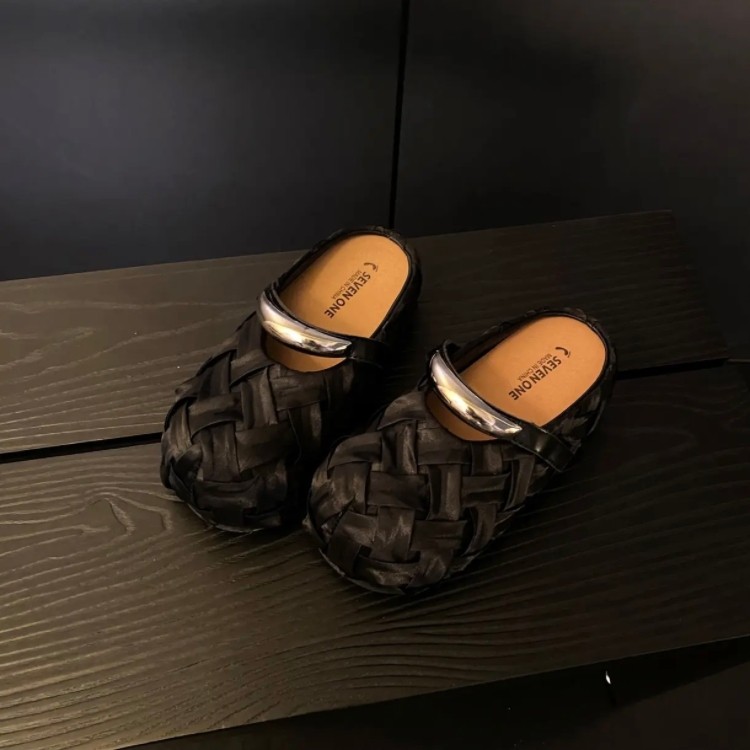厚底增高编织包头半拖鞋女大网眼透气2026新夏季新款黑色轻便潮