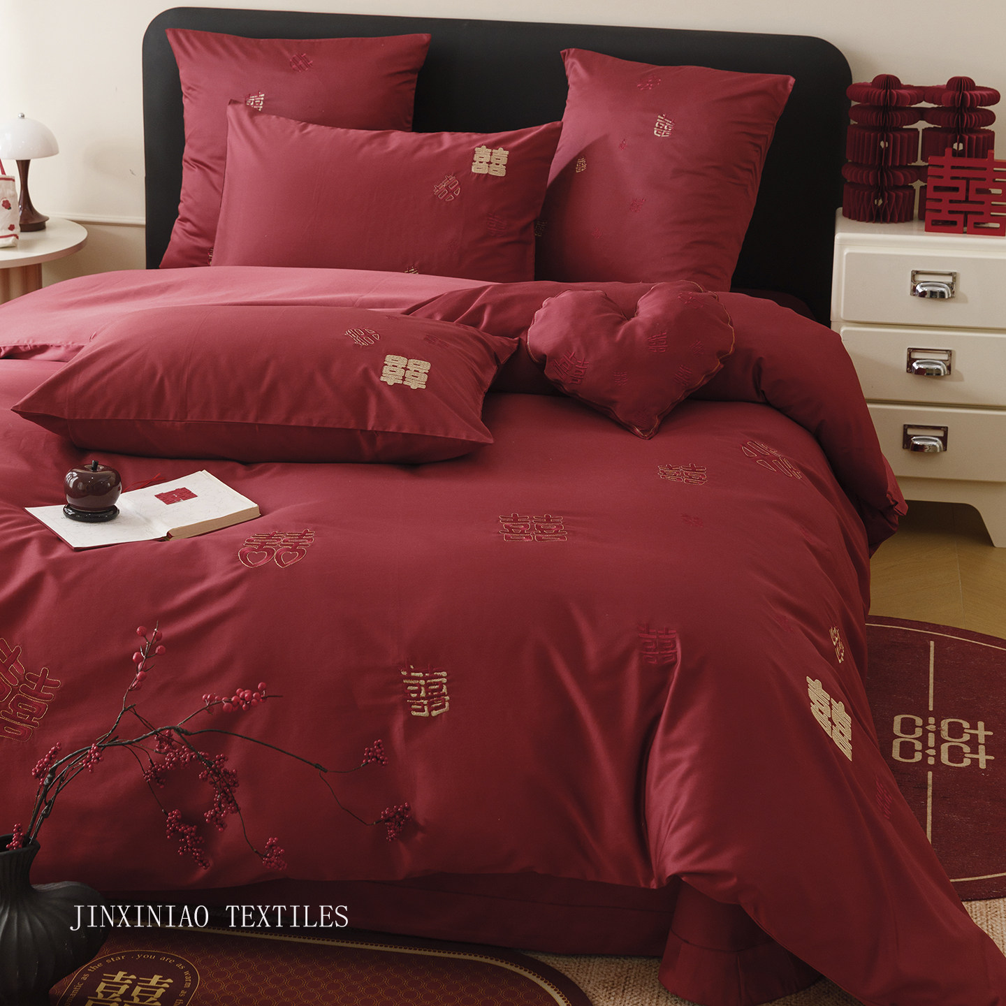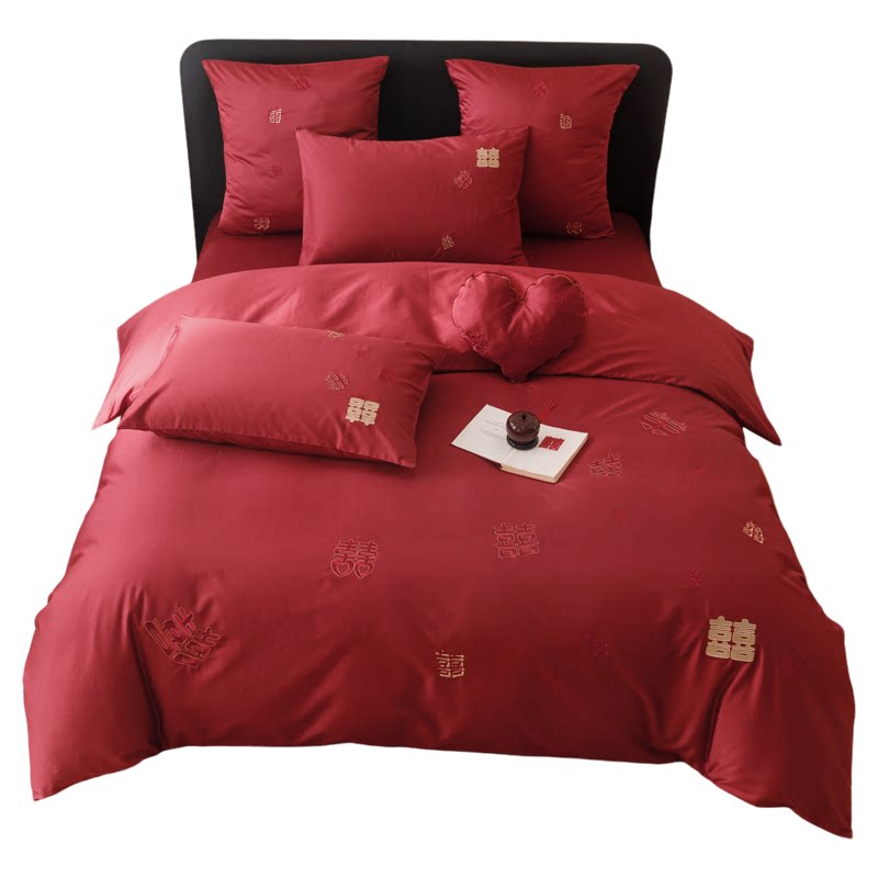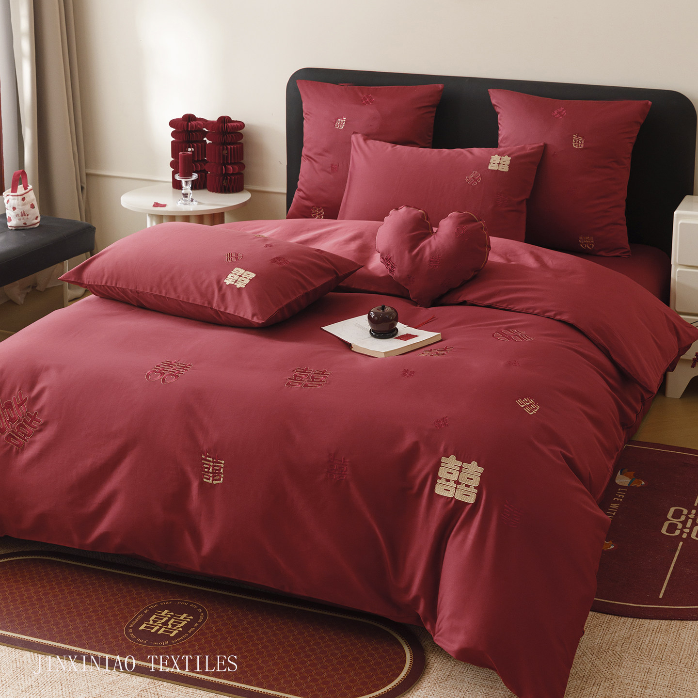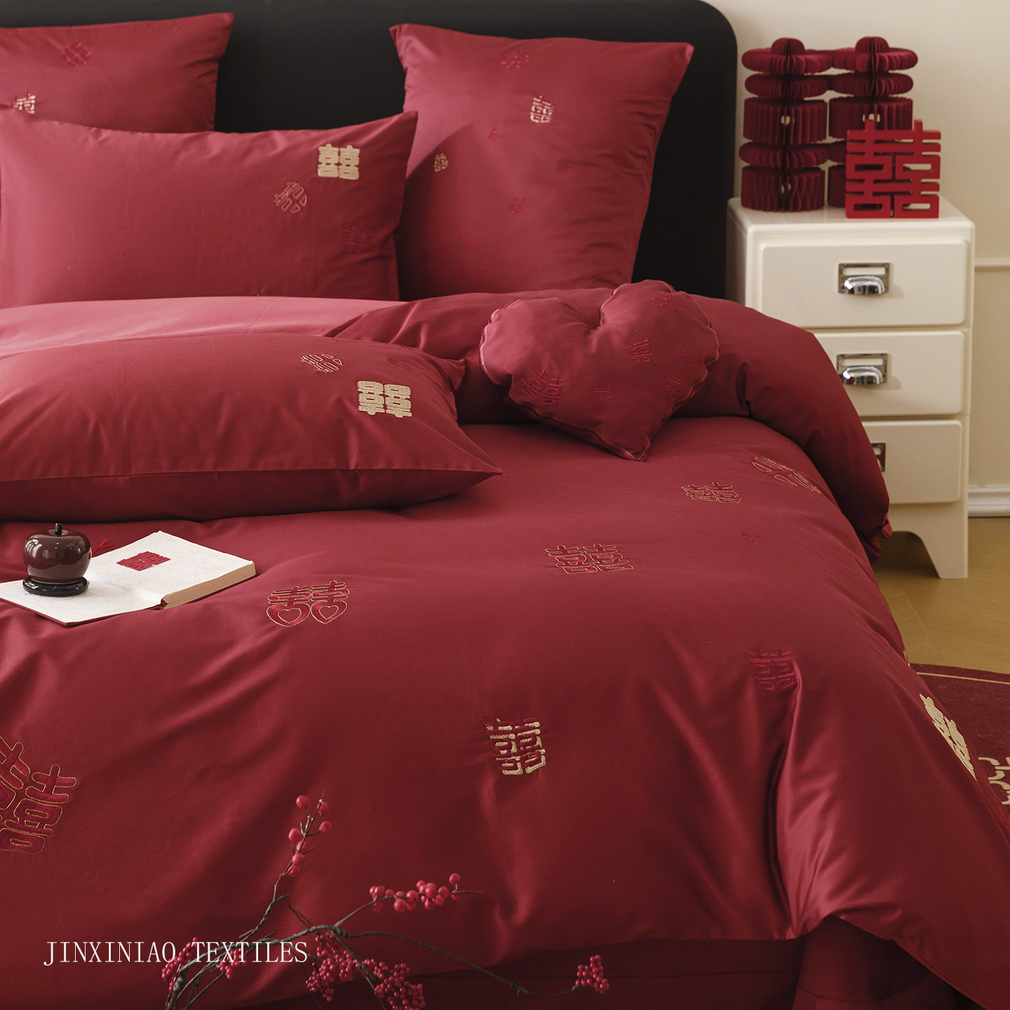 高端大气上档次年轻人结婚四件套全棉婚庆大红色双喜陪嫁喜庆床品