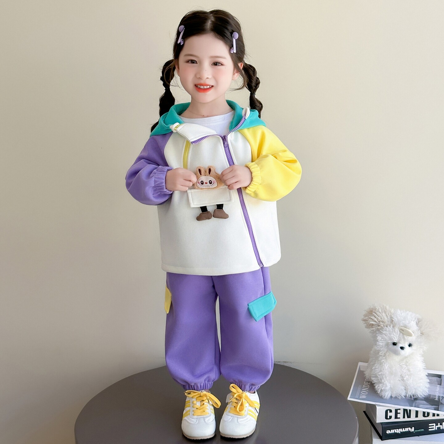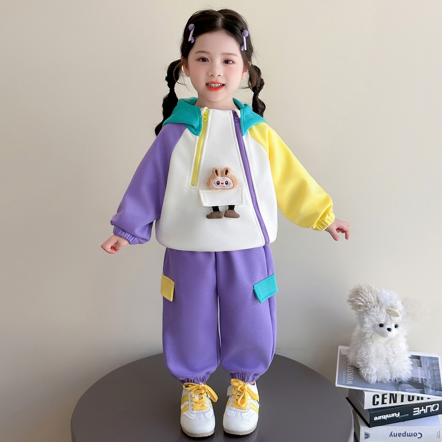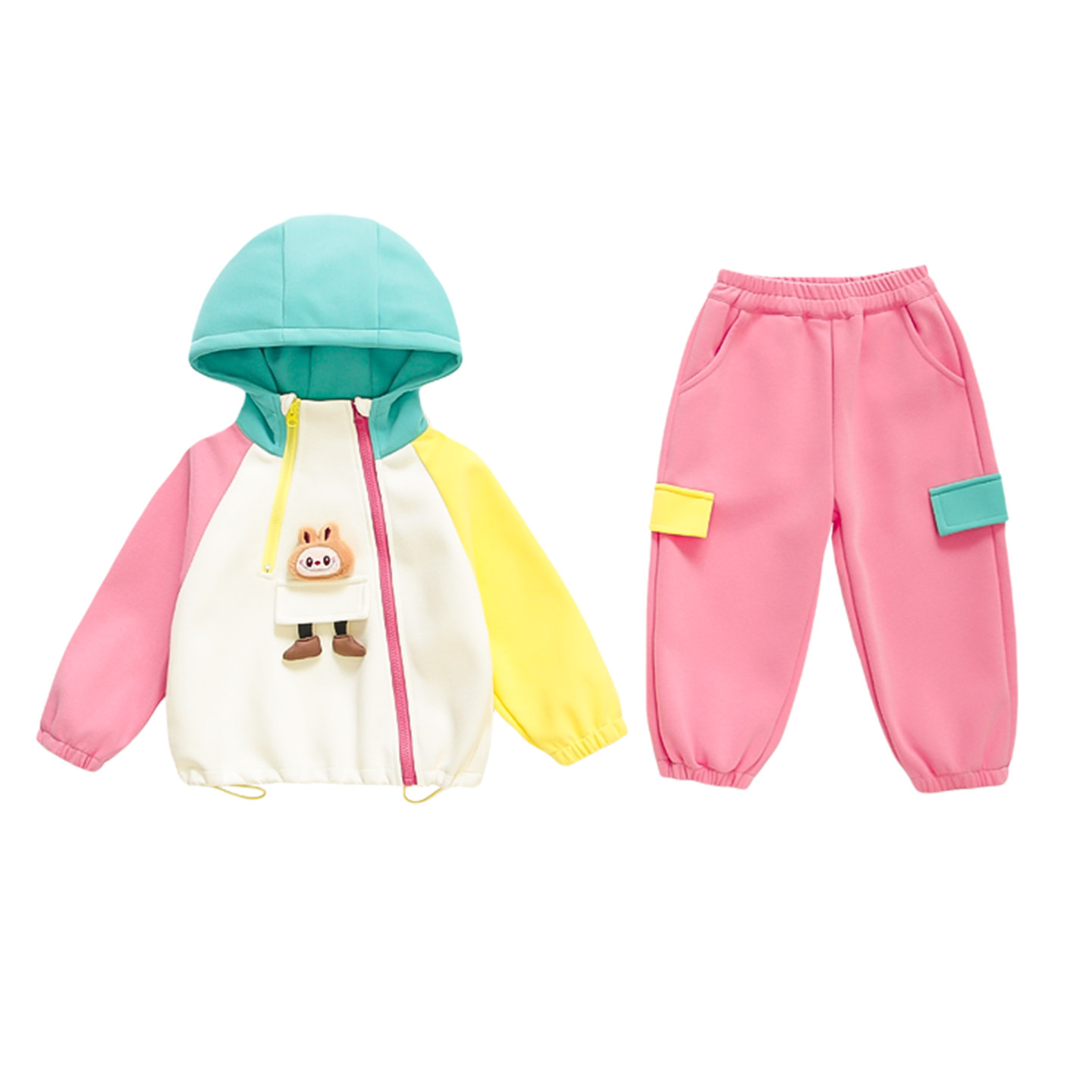 女童春装套装2026款拉布布女孩运动卫衣连帽外套裤子春秋款两件套