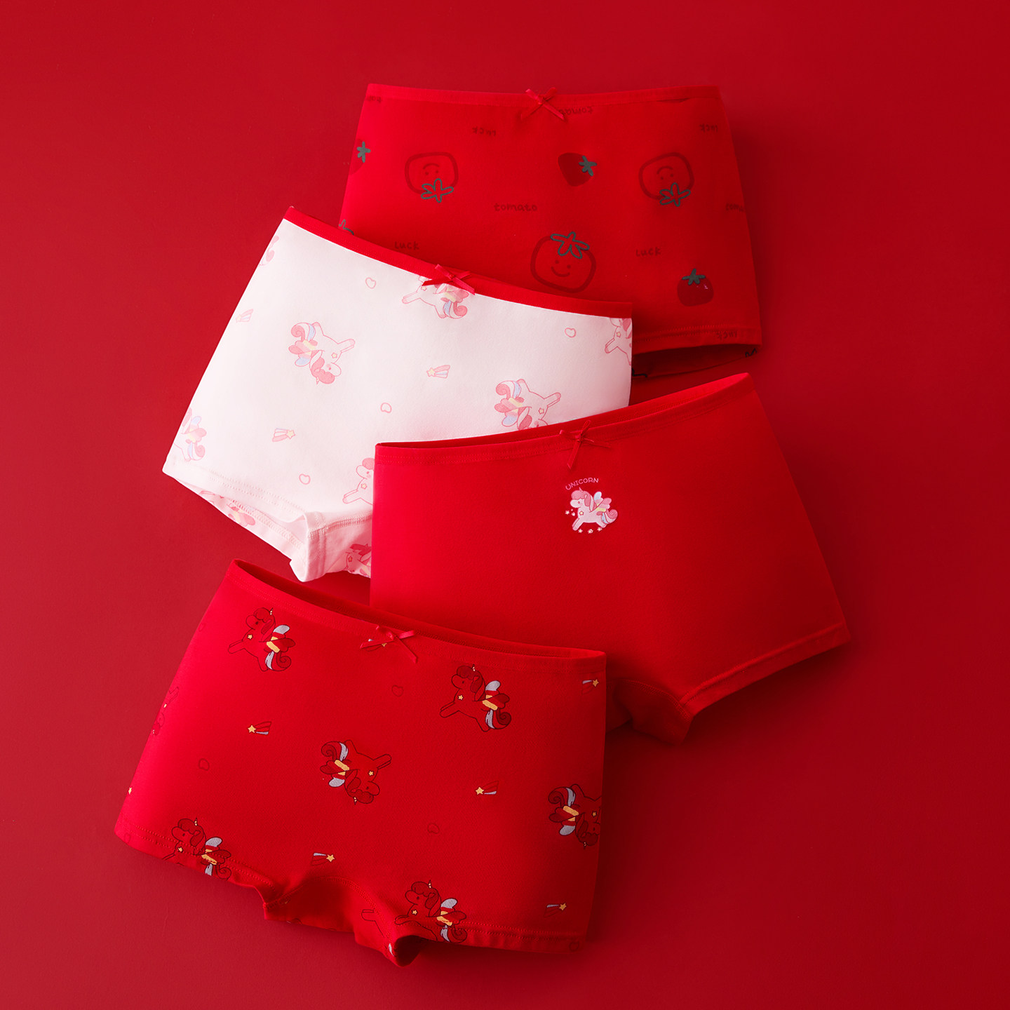 红豆女童本命年红色内裤纯棉女孩新年三角裤马年大童平角短裤抗菌