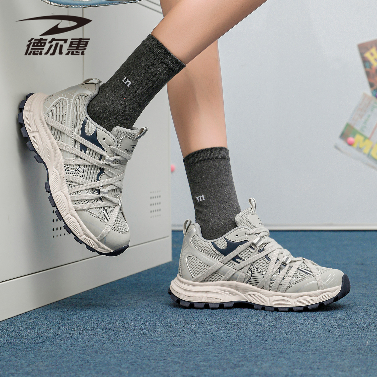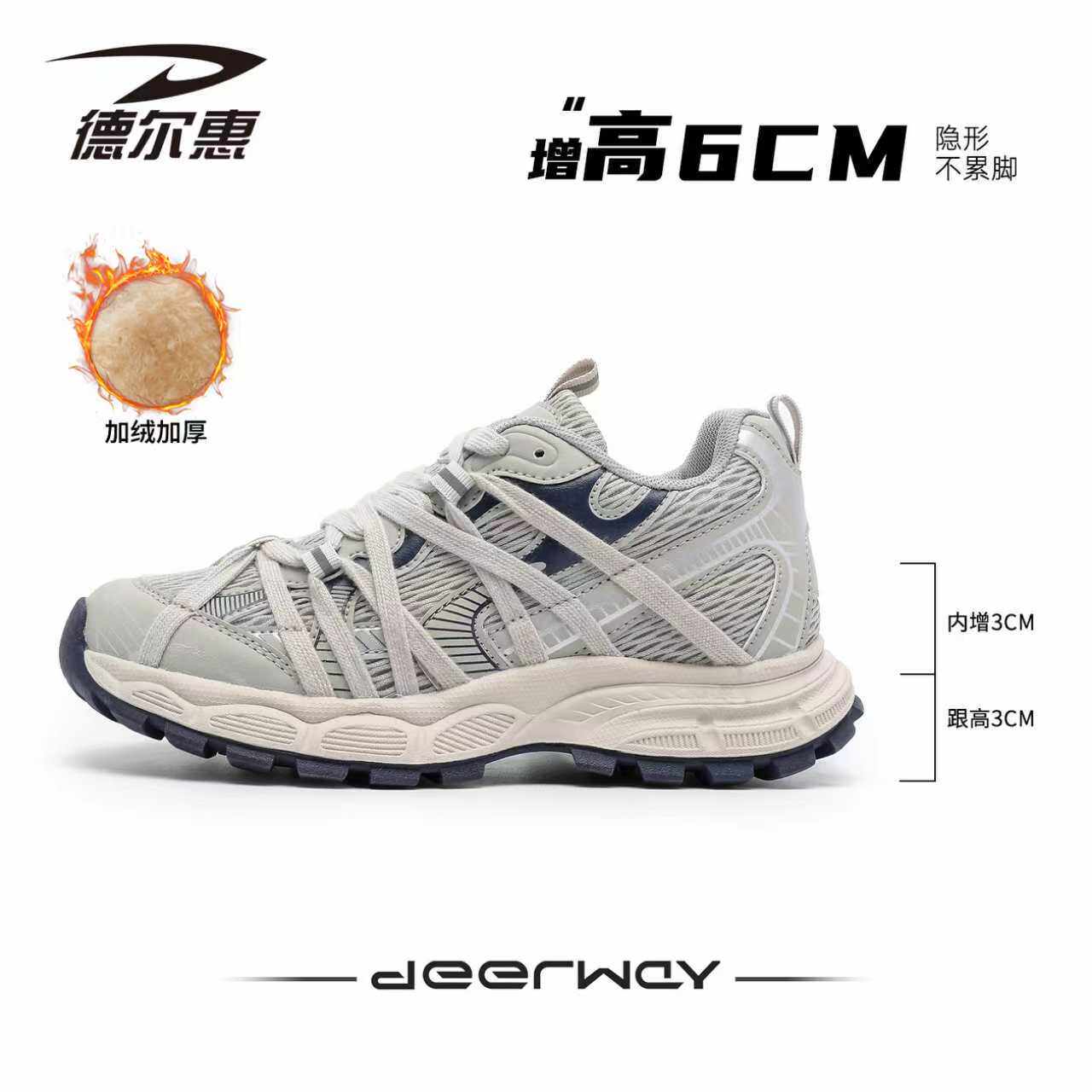 德尔惠6厘米内增高老爹鞋女2026春季新款厚底运动鞋显高户外鞋子