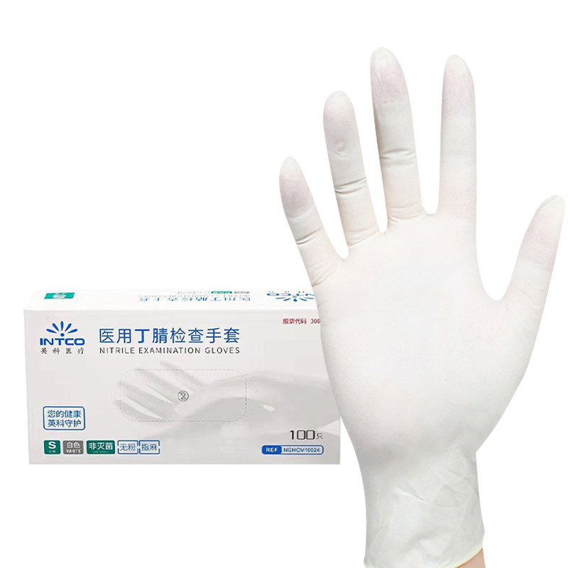 英科医用白色丁腈手套一次性丁晴加厚耐用女胶皮防水乳胶医疗检查