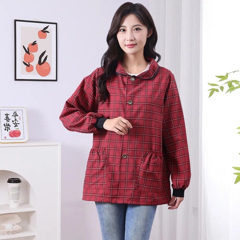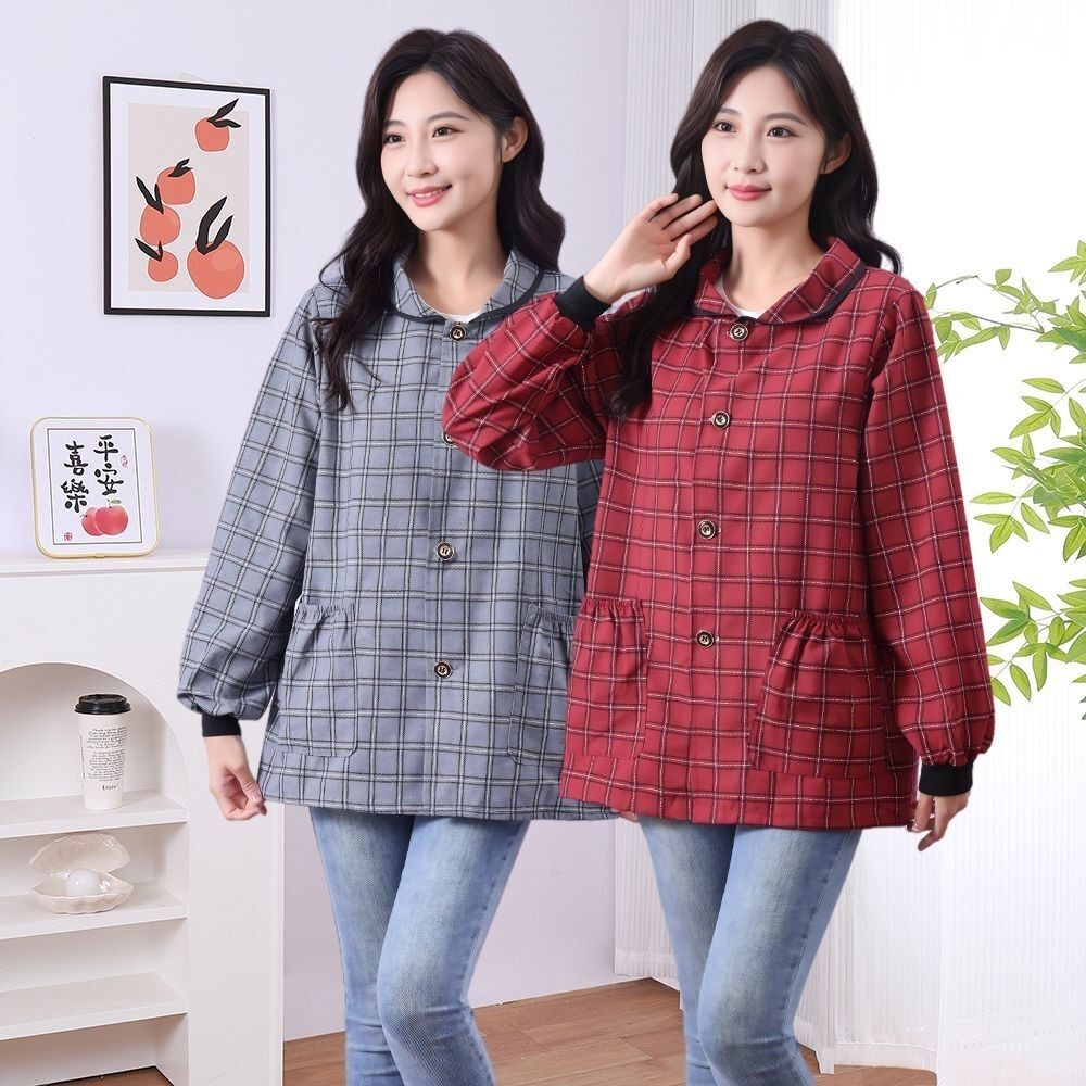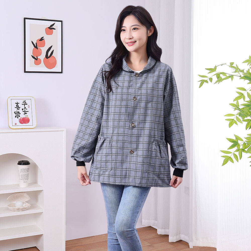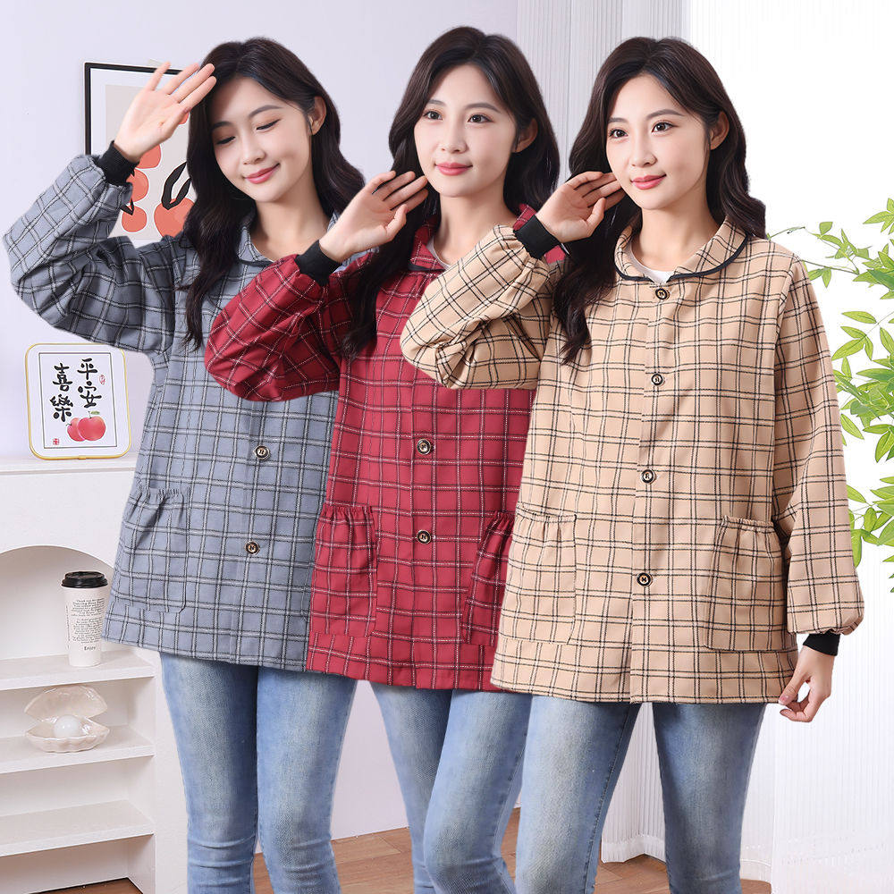 新款正穿长袖棉布短款透气耐磨厨房家用做饭干活耐脏工作服罩衣女