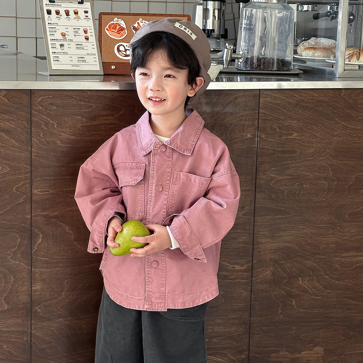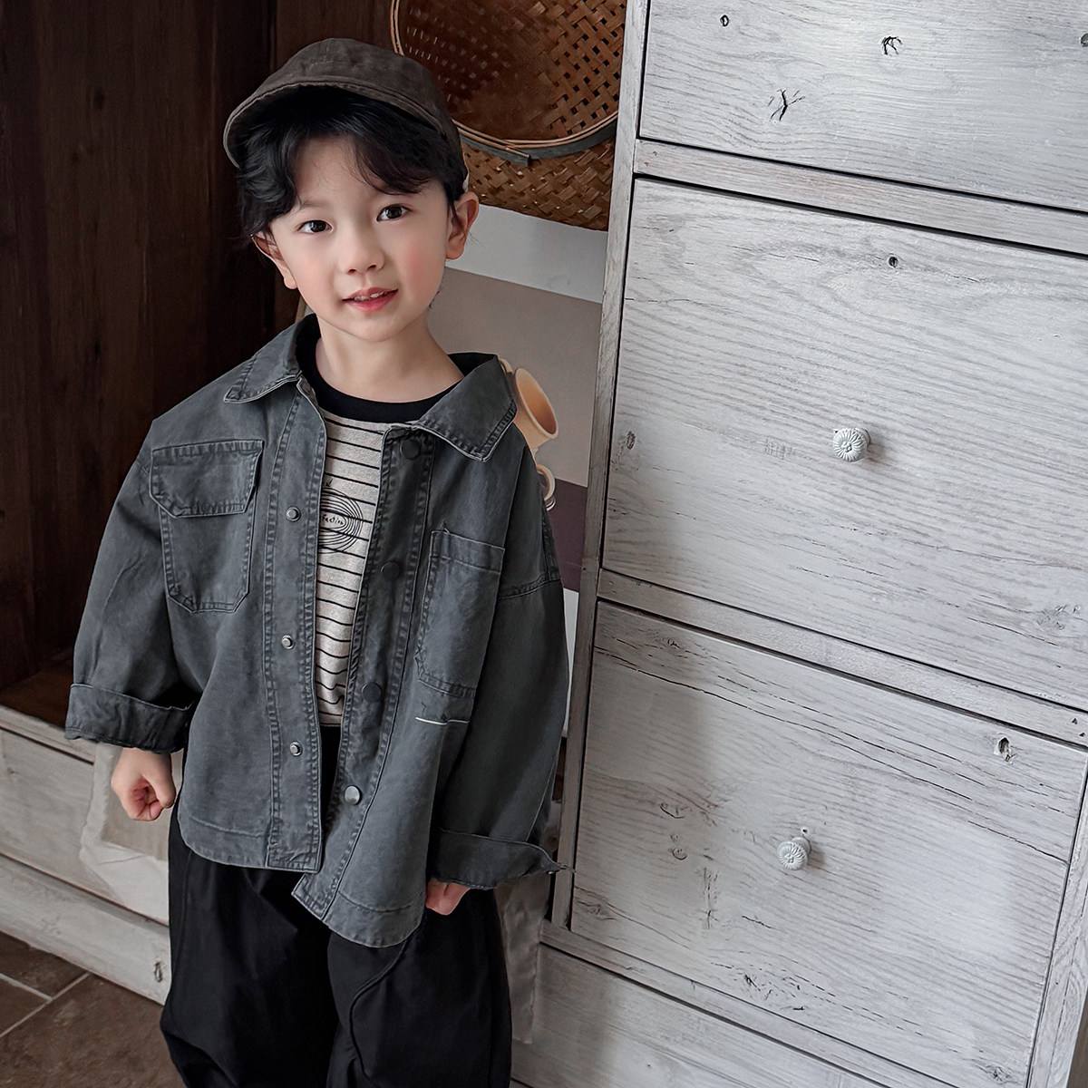 暮晨家新款春装2026男童彩色牛仔衬衫外套中小童做旧复古工装夹克